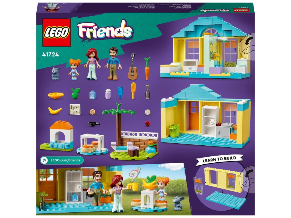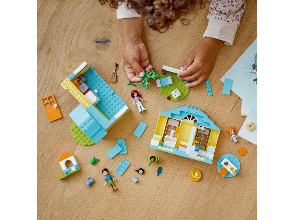 V domu Paisley od LEGO® Friends (41724) budou mít mladí stavitelé od 4 let stále co prozkoumávat. V horním patře je ložnice a koupelna, ale lze jej sundat, aby bylo snazší hrát si i v kuchyni dole. Nechybí spousta doplňků pro hraní příběhů, včetně dobrůtek a ovoce, venkovního stolu a koše na třídění odpadků. V zahradě má Paisley útulný koutek, kde hrává na kytaru a píše písničky. Společnost jí dělá králíček, pro kterého má nachystanou mrkvičku.