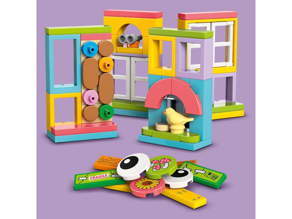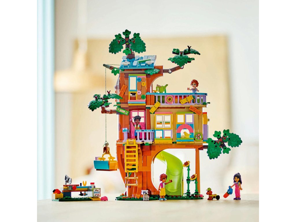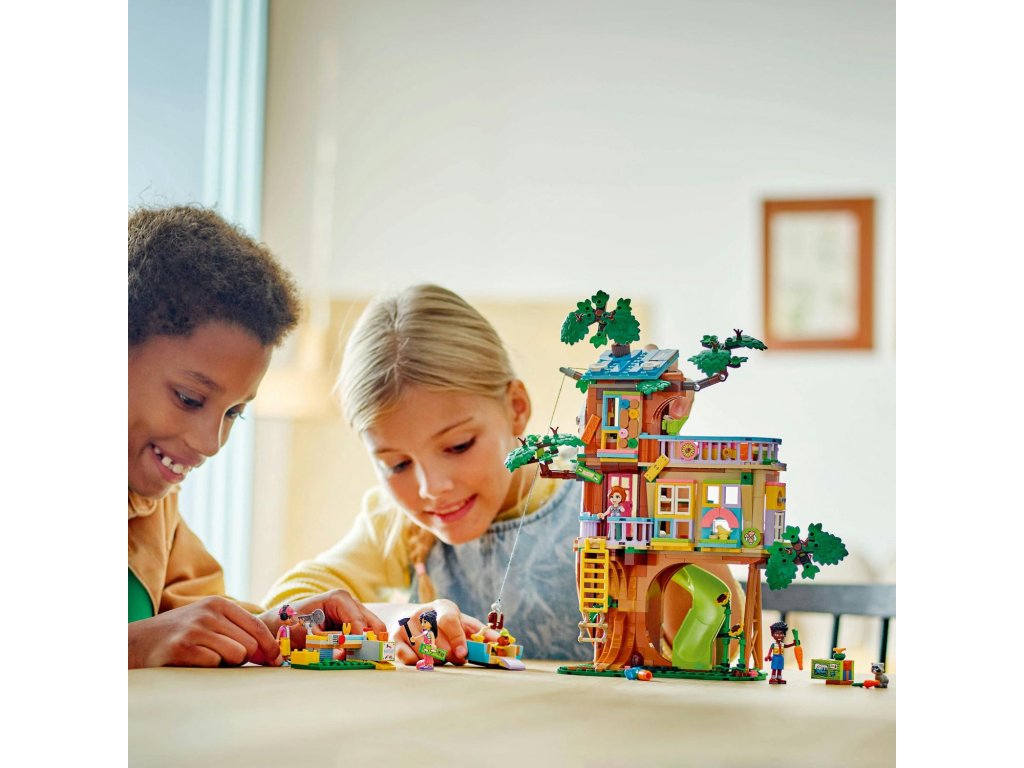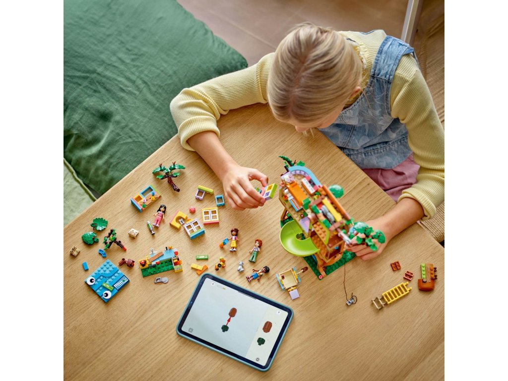 Popusťte uzdu představivosti se stavebnicí LEGO® Friends (42652) Dům přátelství na stromě. Tato propracovaná stavebnice pro děti umožňuje holkám a klukům od 8 let vymýšlet vlastní dobrodružství s kamarády. Součástí jsou 4 minipanenky LEGO Friends,figurka psa a mývala a sestavitelný pracovní stůl s nářadím. Tato stavebnice je plná zábavných příběhů, ve kterých si Liann, Autumn, Leo a Zac užívají společný čas v domku na stromě, který si postavili. Najdete tu místo na hraní, vaření a spaní a zelen inový záhon s mrkví, kterou můžete sklidit. Mezi krásné detaily patří výtah pro pejska Pickla, a tajná skrýš pro mývala. Probuďte kreativitu dětí, které si upraví domek na stromě podle vlastní fantazie díky speciálním dílkům. Vyměnit můžou i ozdoby na oknech, takže malí stavitelé si můžou svůj model přizpůsobit ještě více. Nenechte si ujít další hračky na rozvoj sociálních dovedností ze světa LEGO Friends, ve kterých odhalíte spoustu dalších příběhů (stavebnice se prodávají samostatně).