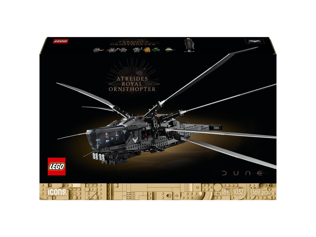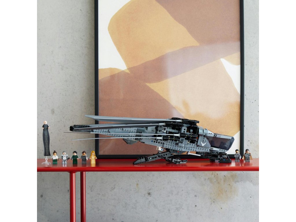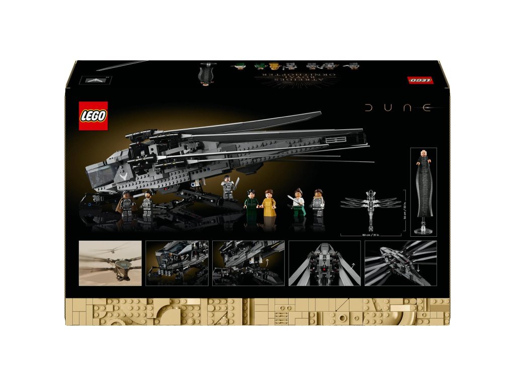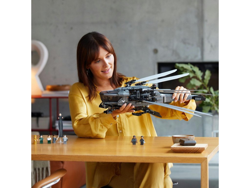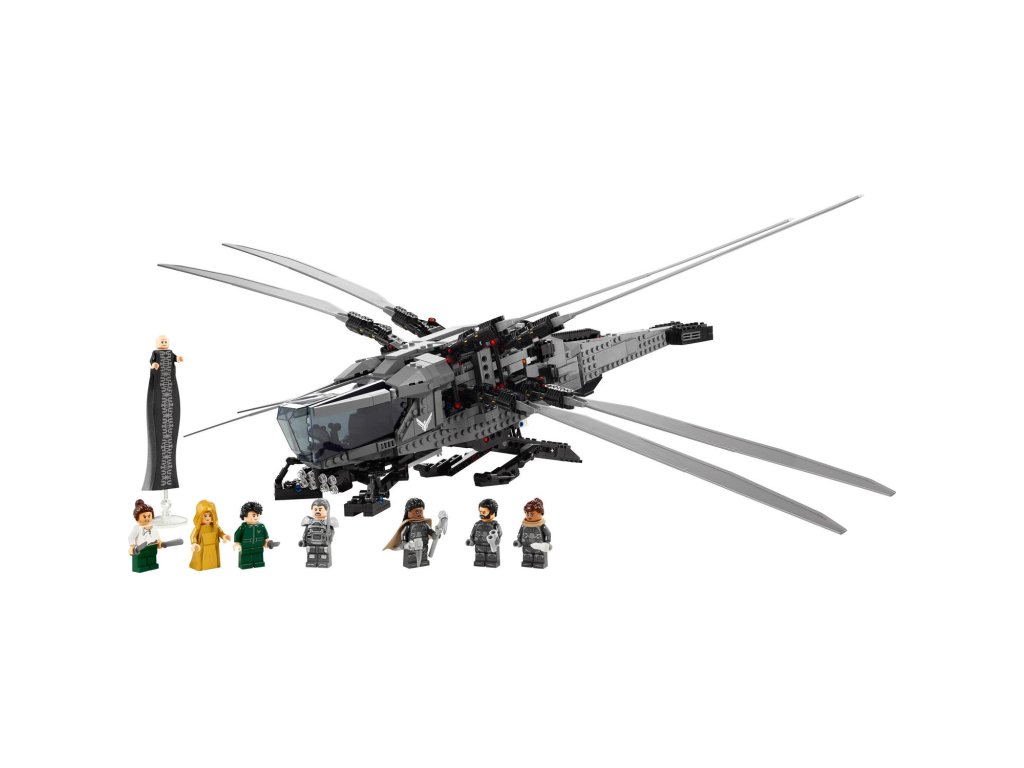 Součástí této prémiové stavebnice je replika ornitoptéry s vyklápěcími mávajícími křídly, zatahovacím podvozkem a otevíracím kokpitem. Nechybí ani 8 slavných postav z filmu: Paul Atreides, lady Jessica, Gurney Halleck, Chani, Leto Atreides, Liet Kynes, Duncan Idaho a baron Harkonnen ve své dlouhé róbě.