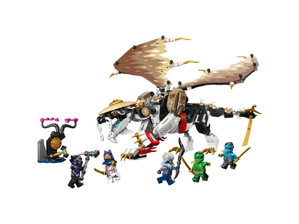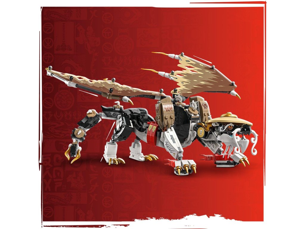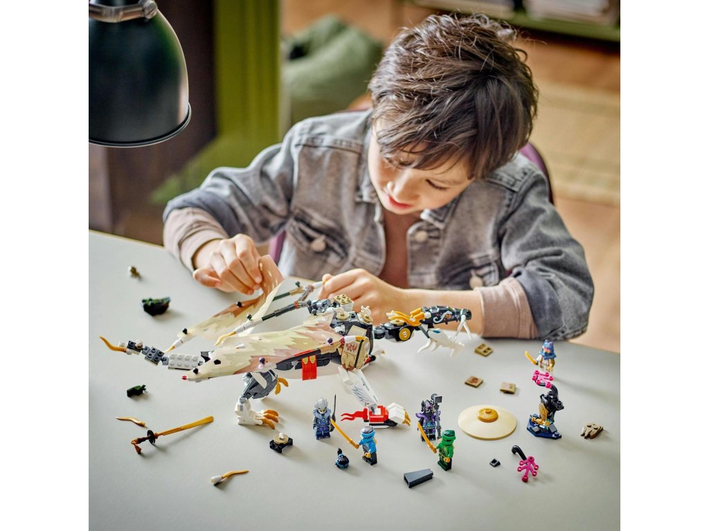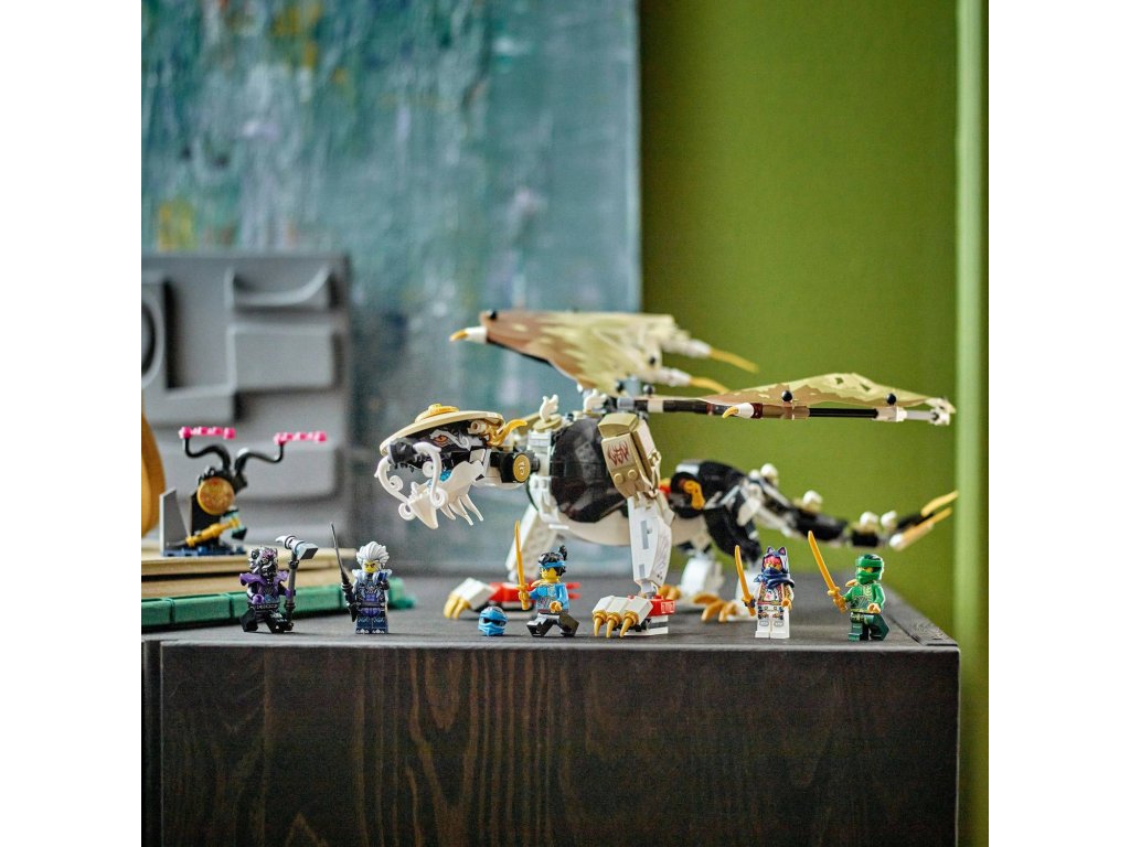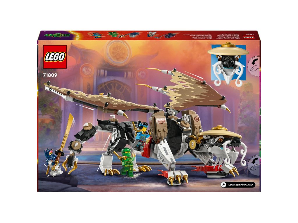 Děti od 8 let si se stavebnicí LEGO® NINJAGO® (71809) Egalt – Pán draků připomenou strhující dobrodružství z 2. řady televizního seriálu NINJAGO® Dračí povstání. Jedná se o vůbec první stavebnici s Pánem draků v řadě NINJAGO a má pohyblivé nohy, ocas a fóliová křídla, vlastní meč a na zádech držák na katanu.