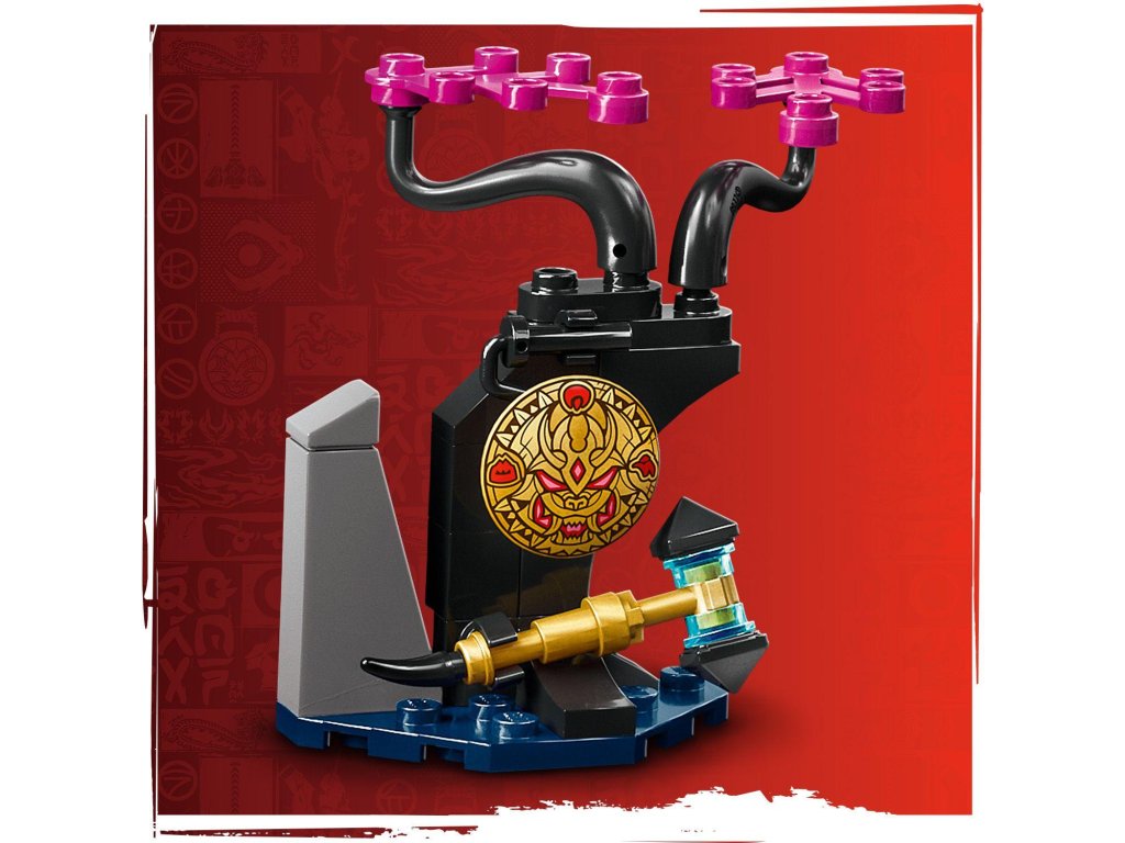 Součástí této dobrodružné hračky je 5 minifigurek, se kterými se děti pustí do přehrávání nindžovských bitev – nindža válečníci Lloyd, Sora a Nya ozbrojení meči a zlá dvojka lord Ras s kladivem a Cinder s mečem. Nechybí ani malý strom z kostek, ve kterém najdete palici roztříštění a gong roztříštění, o které tyto postavy ze světa NINJAGO bojují.