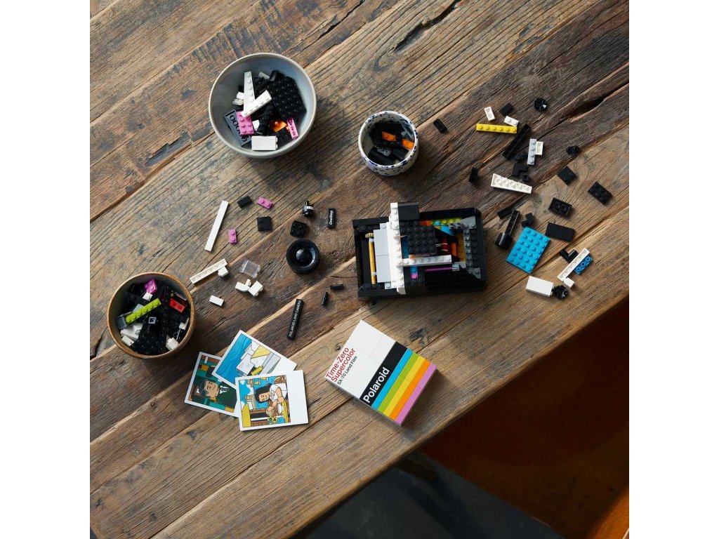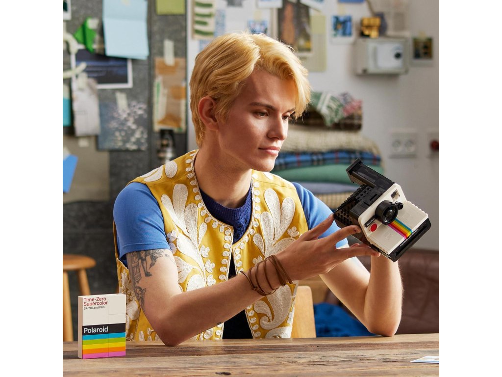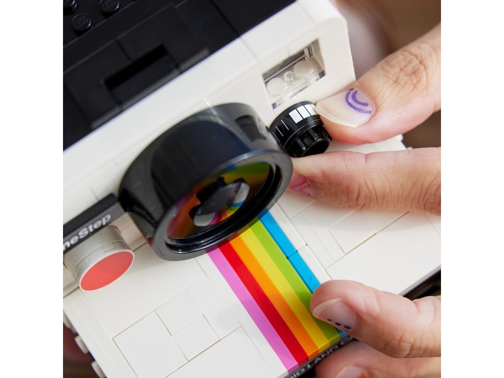 Dopřejte si kvalitní odpočinek při stavení řady autentických designových detailů, jako je hledáček, barevné spektrum nebo kolečko pro kompenzaci expozice, a přidejte samolepky s originálními obrázky. Poskládejte z kostek balíček filmu Polaroid Time-Zero Land Film se 3 ilustrovanými „fotografiemi“, včetně obrázku vynálezce Polaroidu Edwina H. Landa. Vyberte si fotografii, vsuňte ji do fotoaparátu a zmáčkněte červené tlačítko spouště, které fotku vysune jako ve skutečnosti.