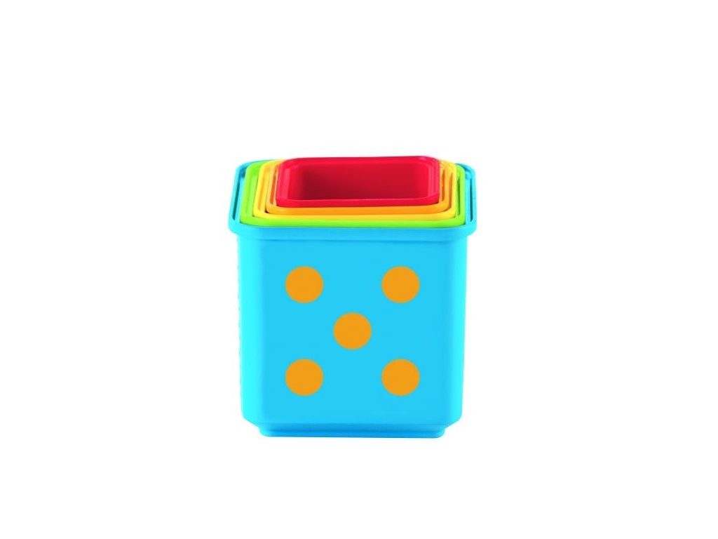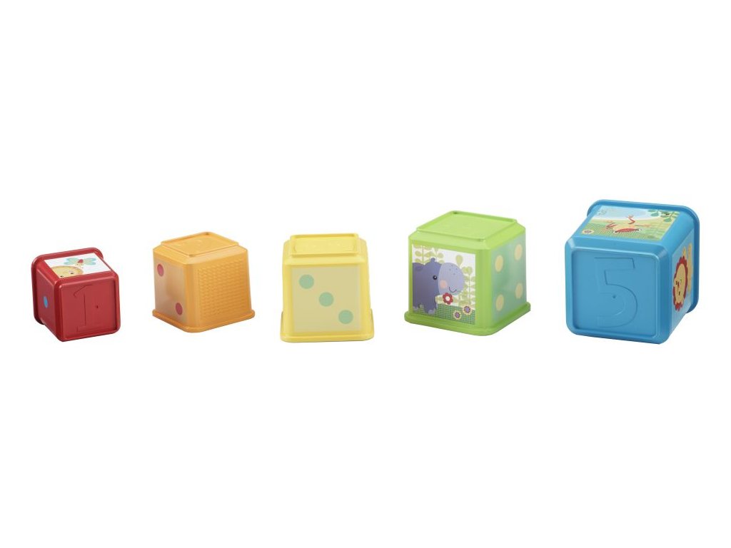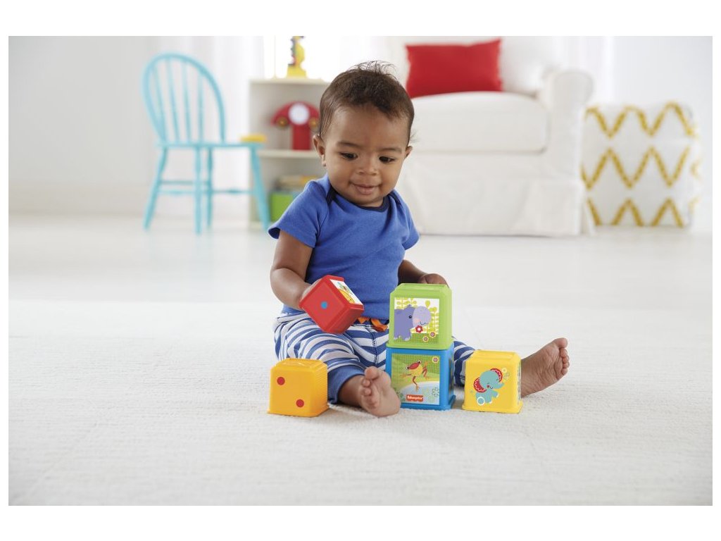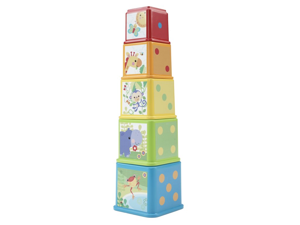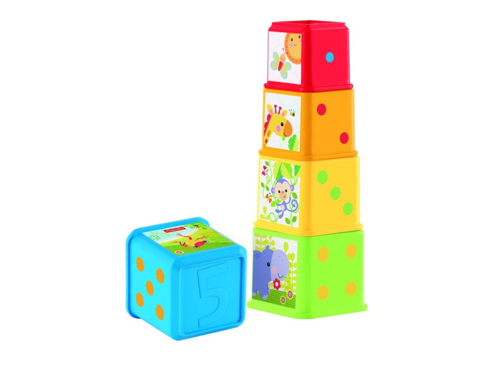 Je tu oblíbená skládací věž, variabilní hračka, ze které Vaše dítě postaví komín, nebo díly naskládá do sebe. Ale taky může položit jednu k druhé a vytvořit tak barevný obraz! Na jednotlivých kostkách může dítě objevovat čísla, obrázky a textury. Hra pomáhá dítěti rozvíjet jemnou motoriku a koordinaci očí a rukou. Jednoduché skládání dodá dítěti pocit sebedůvěry.