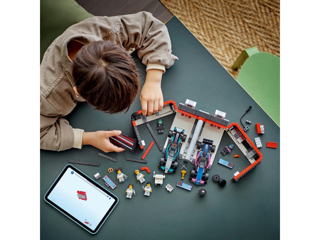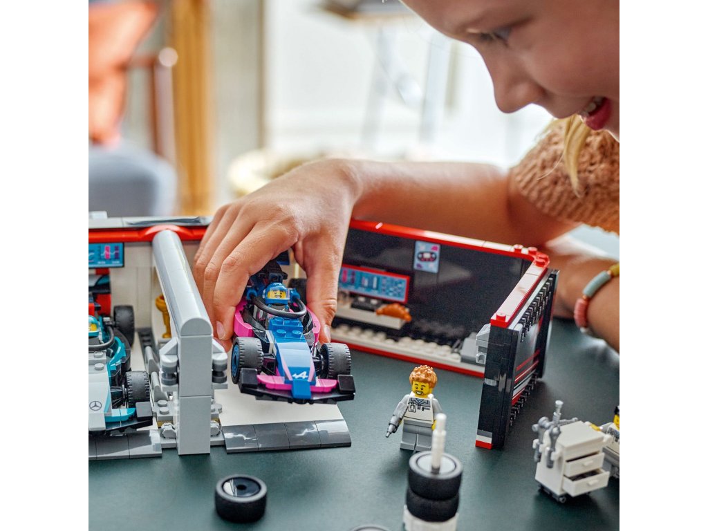 Hledáte stylové autíčko, které poslouží jako krásný dárek? S modelem LEGO® City (60444) Garáž F1® a vozy Mercedes-AMG a Alpine se děti od 7 let vydají do strhujícího světa Formule 1. Tato přenosná stavebnice s modelem F1 má madlo pro přenášení a po rozložení odhalíte garáž a dílnu vybavenou pracovními stoly, vozíky na nářadí a svářečku a věží hladkých pneumatik. Děti stlačí páčku, vypustí závodní auta F1 ze startovní rampy a ponoří se do napínavých příběhů a dobrodružství na závodní dráze se 2 minifigurkami řidičů, 4 mechaniky a trofejí pro vítěze. Tento model LEGO F1 je dodáván s digitálním návodem v aplikaci LEGO Builder, ve které si děti můžou přibližovat a otáčet modely ve 3D, sledovat svůj postup při stavění a prozkoumávat a ukládatdalší stavebnice. Přineste si domů stavebnici s vozidly F1 od LEGO City, která představuje perfektní dárek k Vánocům nebo narozeninám pro malé fanoušky napínavého závodění. Objevte dynamickou řadu stavebnic LEGO s tematikou F1 pro děti i dospělé.