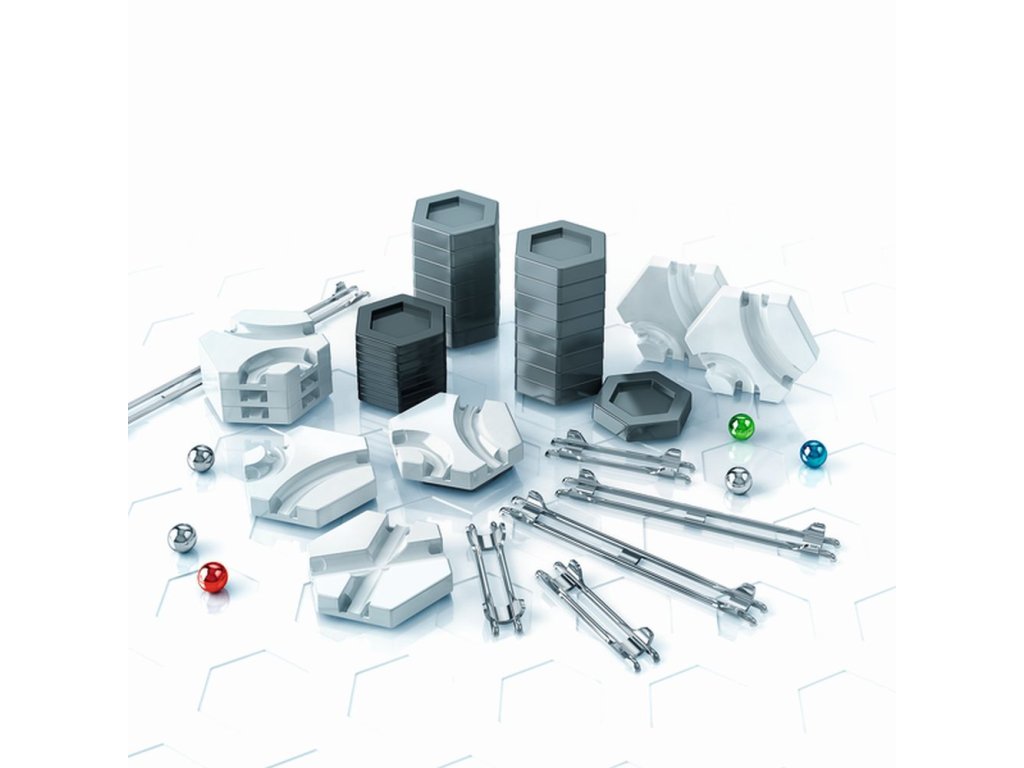 Ať se kutálí co nejdále! Tato sada Vám umožní prodloužit délku tratí a doplní vám další materiál pro stavbu sloupů. Tato rozšiřující sada posune celou hru na ještě vyšší úroveň. Jak dlouho dokážete udržet kuličku na dráze? Překonáte svůj vlastní rekord?