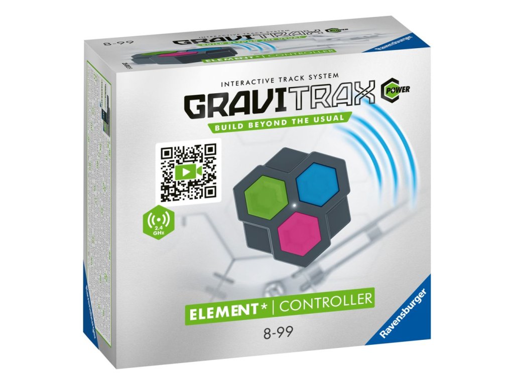 Staň se součástí dráhy, ovládej jízdu jednotlivých kuliček dle libosti pouhým kliknutí na ovladač a užij si nikdy nekončící zábavu. Ovladač elektronických doplňků z řady GraviTrax Power v samostatném balení je tu. Vysílá signály ke každému elektronickému doplňku GraviTrax Power. Ovladač udává načasování a posloupnost akcí na trati.