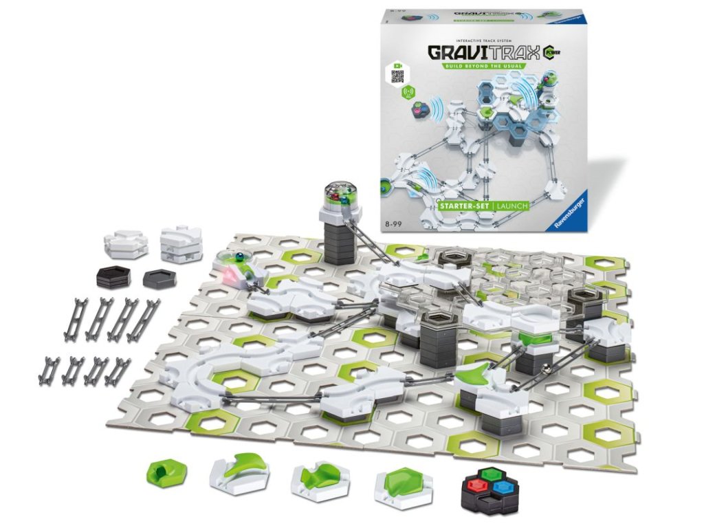 Startovní sada Launch se 123 úžasnými konstrukčními prvky je dokonalým úvodem do nové řady GraviTrax Power. Kromě základních stavebních prvků pro stavbu dráhy GraviTrax obsahuje tato sada také ovladač elektronických doplňků, Kupolový Startér a cílový kámen skádající se ze Spouštěče a Přistávací Arény. Obsahuje tak vše pro okamžité budování dráhy, objevování nových funkcí a zahájení nekonečné jízdy. Elektronické prvky pomocí vysílaných a přijímaných signálů vzájemně propojují start a cíl této kuličkové dráhy. Když kulička proletí Spouštěčem těsně před dojezdem do cíle, je vyslán signál do kupole a automaticky se spustí nová kulička. Nekonečná zábava je zaručena.
