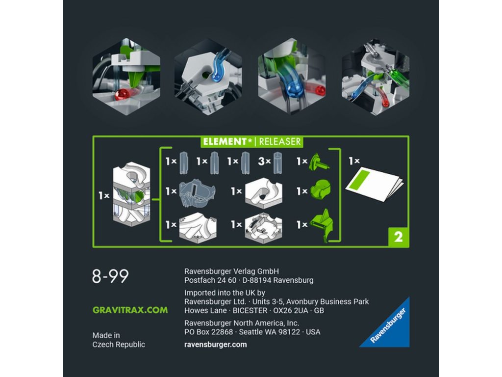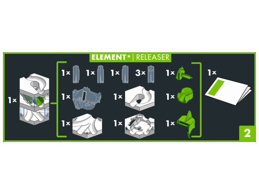 Tento doplněk vytvoří propojení na třech úrovních. V nejvyšším patře se mohou kuličky kutálet do Uvolňovače dvěma vchody. Jakmile se kulička v nejnižším patře převalí přes Uvolňovač, kulička v nejvyšším patře se uvolní a opustí kámen v prostředním patře. To znamená, že můžete Uvolňovač zabudovat do dráhy jako zpomalovač a uvolňovač kuliček.