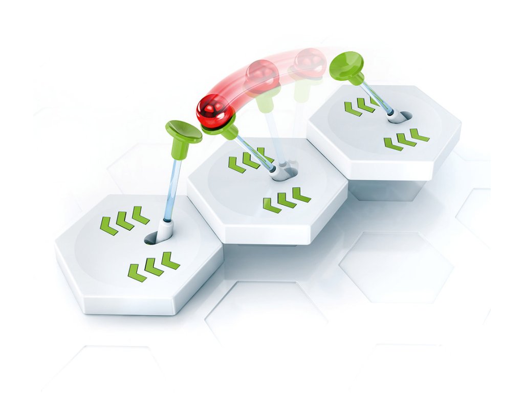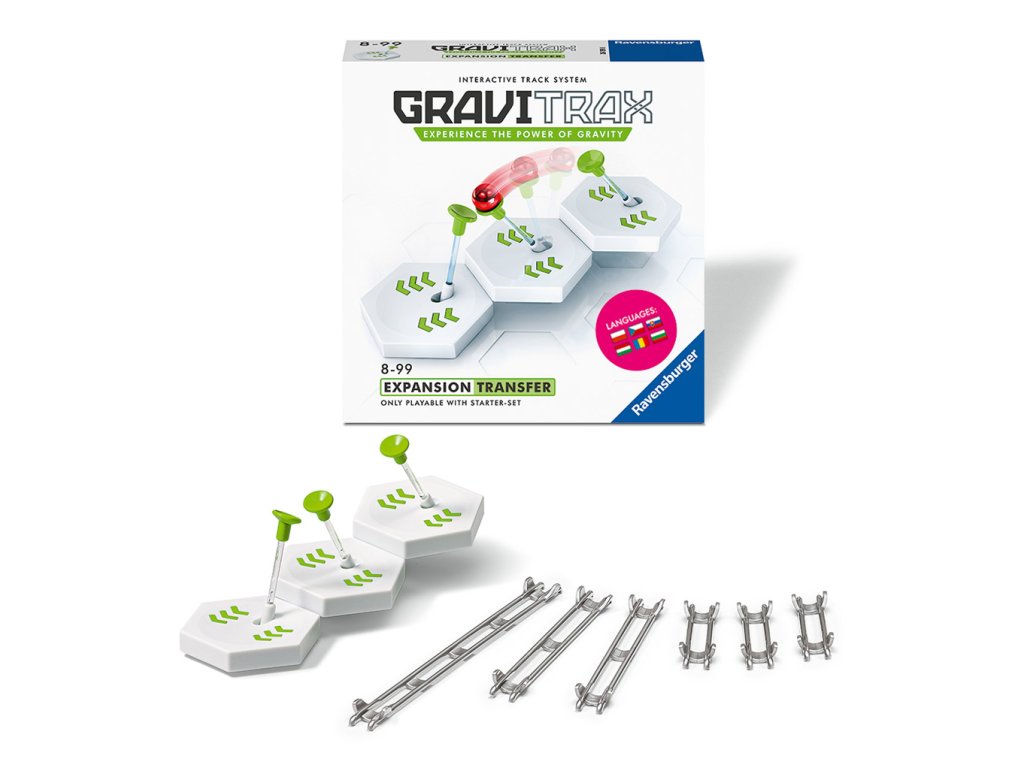 Transfer převede kuličku na druhou stranu propasti. Dokážeš ho ve své dráze vhodně zapojit? Set obsahuje dílky k sestavení 3 plošinek. Proměňte tak vaši dráhu ve skutečně velkolepou konstrukci.