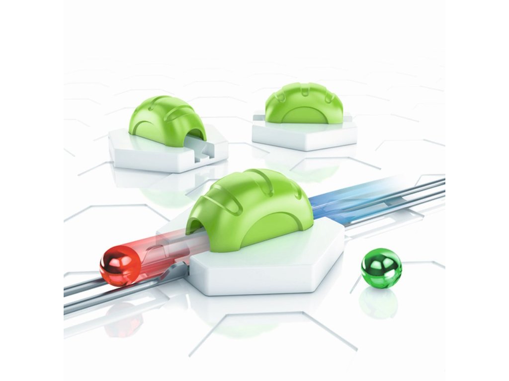 Kouzlo! Kulička změní barvu, jakmile projede Tunýlkem. Kolikrát lze během jízdy změnit barvu kuliček? V kombinaci se Startovní sadou přináší nový akční doplněk Tunýlky nový prvek překvapení do celého světa GraviTrax.
