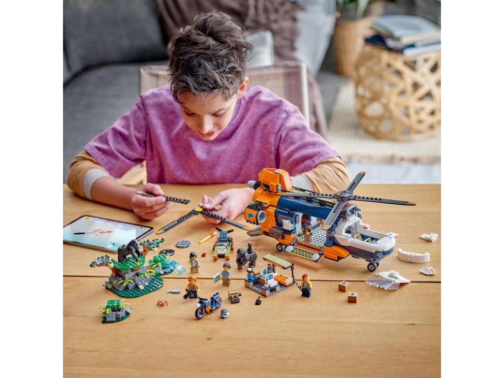 Helikoptéra na průzkum džungle v základním táboře