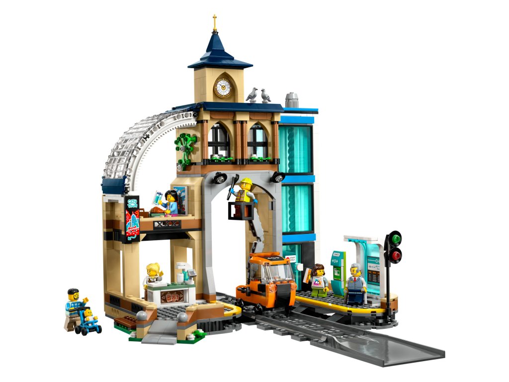 Stavebnice LEGO® City (60469) Hlavní vlakové nádraží pro děti od 7 let má 3 patra a je plná parádních funkcí pro kreativní hraní. V modelu stanice s klasickou hodinovou věží najdete útulnou kavárnu, funkční výtah, řídicí místnost, autobusovou zastávku, 2 nástupiště pro cestující, obrazovku s jízdními řády a automat na jízdenky. Nechybí údržbářský vůz vybavený pracovní plošinou, 6 minifigurek, figurka miminka a 2 figurky holubů na hraní na postavy a vyprávění příběhů. Tento model vlakového nádraží je dodáván s podrobným tištěným návodem na stavění a v aplikaci LEGO Builder najdete digitální návod. V aplikaci si děti můžou přibližovat a otáčet modely ve 3D, ukládat stavebnice a sledovat svůj postup při stavění. Ve stavebnicích z řady LEGO City na vás čekají parádní vozidla, realistické modely a zábavné postavy, které inspirují ke kreativnímu hraní. Děti můžou tuto stavebnici LEGO City kombinovat s dalšími kreativními stavebnicemi z řady LEGO City (prodávají se samostatně) a rozšířit si tak svět herních možností. Stavebnice obsahuje 752 dílků.