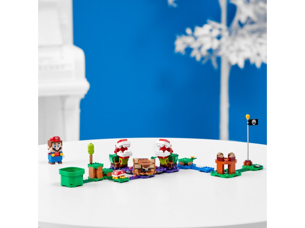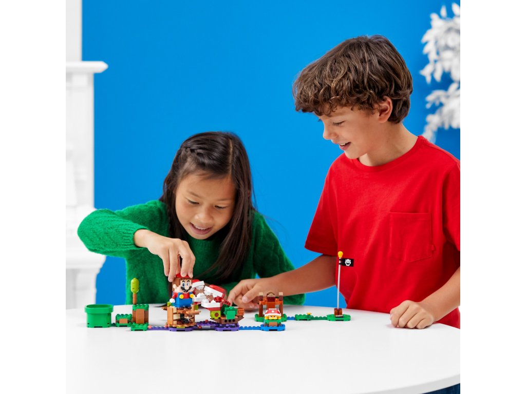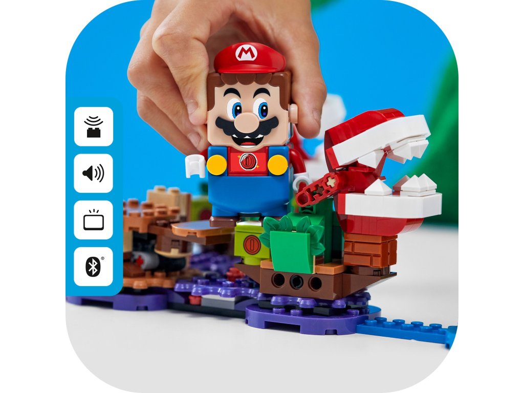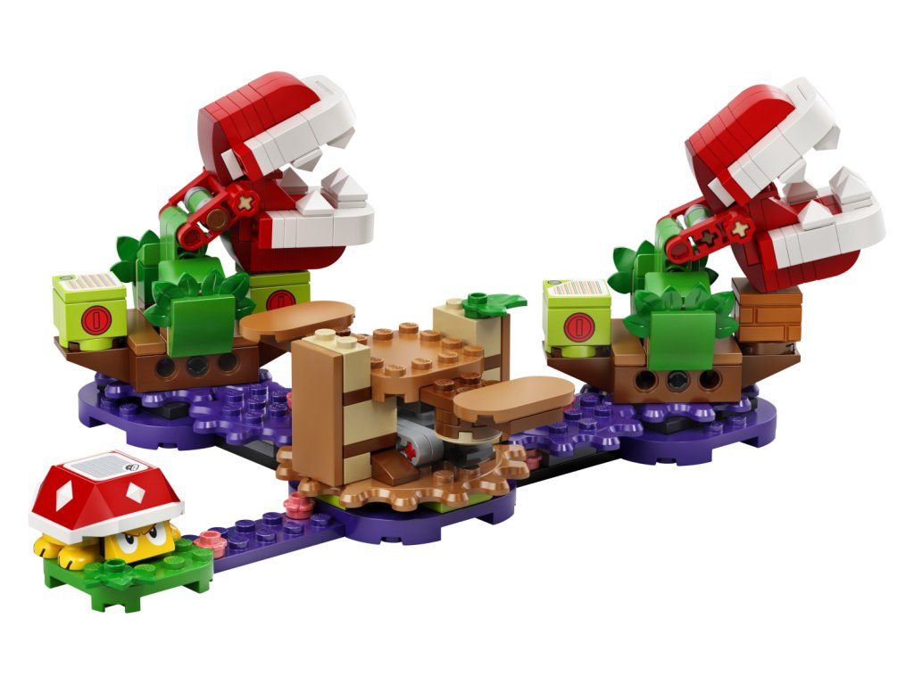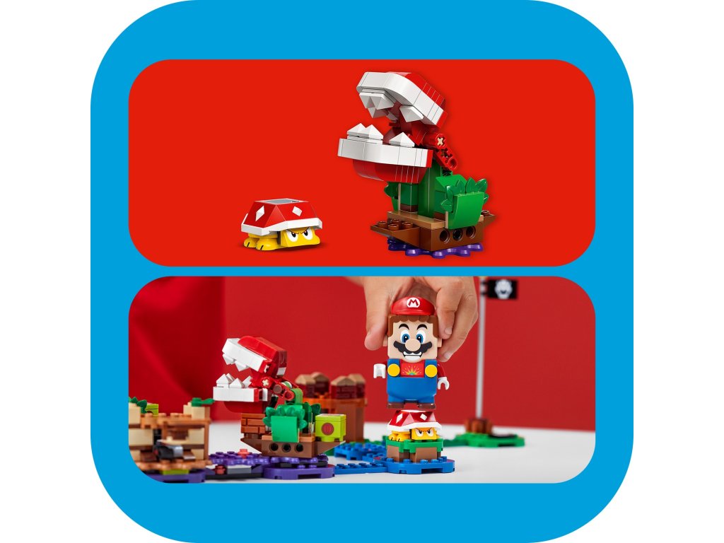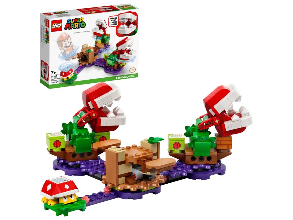 Vneste do světa LEGO® Super Mario™ ještě více zábavy, kterou lze sdílet i s kamarády. Kupte dětem Hlavolam s piraňovou rostlinou – rozšiřující set (71382). Obsahuje 2 piraňové rostliny a figurku Spinyho, kterou musí LEGO® Mario™ (není součástí) porazit. Dále je zde kolotoč, který odstraní piraňové rostliny z cesty a umožní hráčům dojít ke 3 červeným kostkám, jež nabízejí velkou odměnu v podobě digitálních mincí. (Poznámka: Pro interaktivní hraní je zapotřebí Startovací set 71360.)