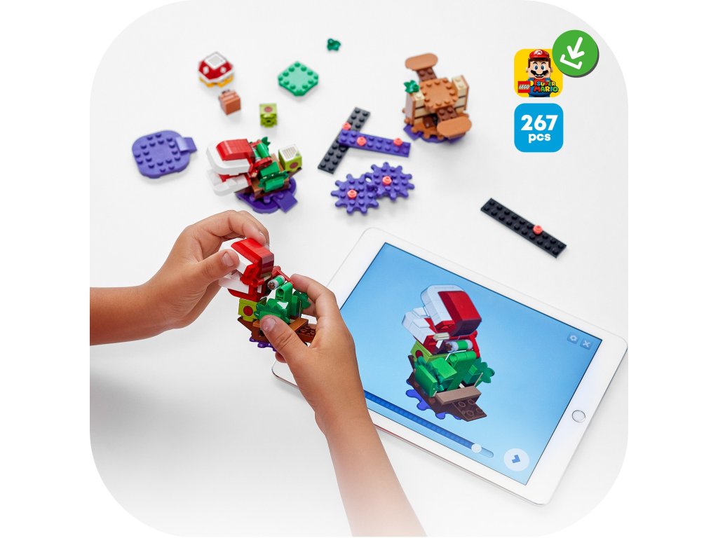 Digitální pokyny Návod Instructions PLUS s nástroji zobrazování znamená ještě více zábavy při stavění. Je k dispozici v bezplatné aplikaci LEGO Super Mario. Aplikace nabízí tipy na kreativní přestavování a slouží jako bezpečné prostředí pro sdílení dětských výtvorů.