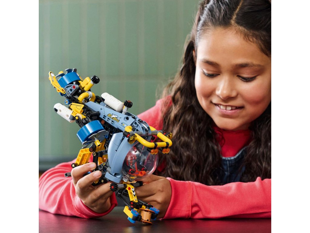 Inspirujte děti od 9 let k objevování tajemství oceánů se stavebnicí Hlubinná výzkumná ponorka (42201). Model je plný funkcí, které najdete ve skutečných ponorkách, včetně řízení, 3 rotujících šroubů, 3 vzduchových nádrží a kokpitu se sedadlem a ovládacími prvky. Ponorka je vybavena výsuvným ramenem, které umožňuje uchopit a zvednout sud, zatímco si děti vymýšlí vlastní dobrodružství na mořském dně. Tato stavebnice ponorky je součástí řady stavebnic LEGO® Technic s realistickým pohybem, které seznamují malé stavitele se světem techniky. Ponorka představuje skvělý dárek pro děti, které mají rády stavebnice dopravních prostředků. Aplikace LEGO Builder děti provede intuitivním stavitelským dobrodružstvím. Umožňuje jim přibližovat a otáčet modely ve 3D, ukládat stavebnice a sledovat postup.