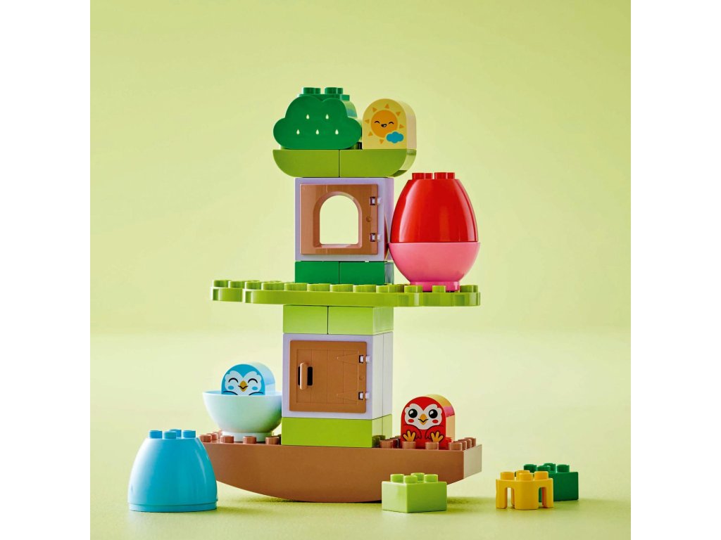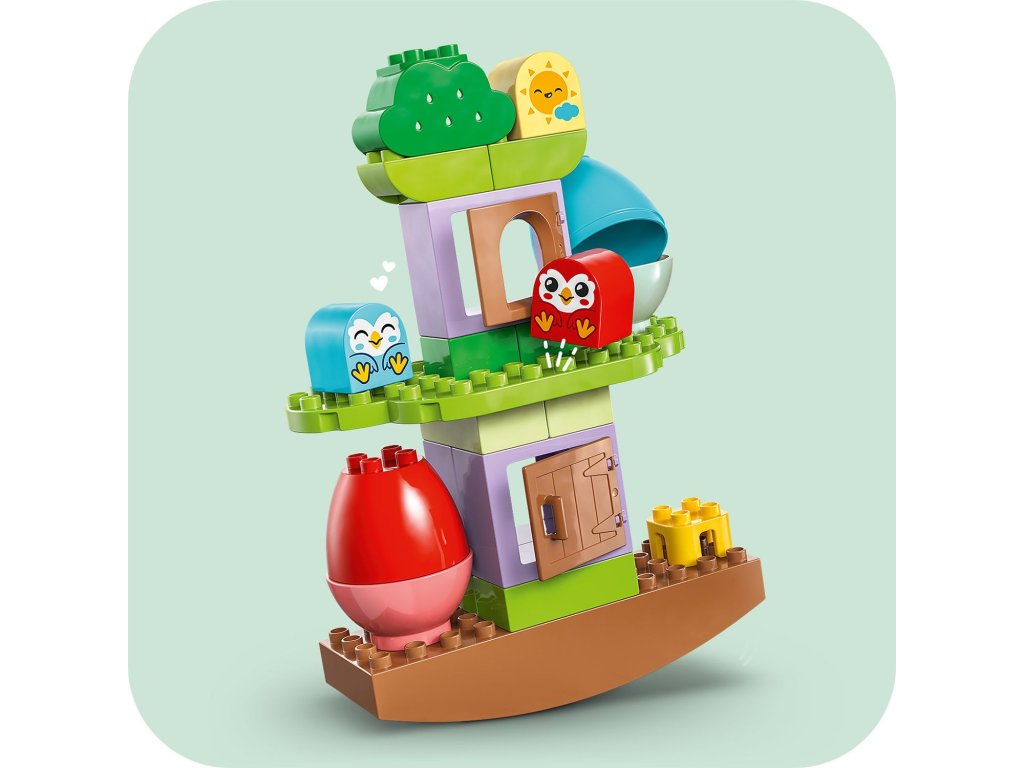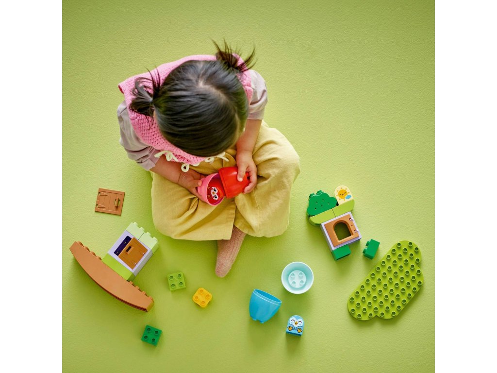 Vneste do hraní dynamickou zábavu plnou balancování se vzdělávací hračkou Houpací a skládací strom (10440). Tato pestrobarevná stavebnice pro děti od 18 měsíců malým stavitelům přinese hodiny učení a zábavy v roztomilém domě na stromě se sovami. Tato stavebnice pro malé děti je navržena tak, aby pomáhala rozvíjet trpělivost a schopnost řešení problémů při vymýšlení způsobů, jak skládat dílky tak, aby byl strom vyvážený. Malí milovníci zvířat mohou přidat další kostky a strom upevnit nebo jednoduše prozkoumávat domek na stromě se sovími figurkami LEGO® DUPLO®. Dospělí s pomocí denní a noční kostky ukážou dětem, že tito ptáci jsou aktivní v noci, ale přes den spí ve vejcích. Malé děti procvičí své jemné motorické schopnosti při otevírání dotykových vajíček a schopnost třídit barvy při přiřazování sov k vejcím. Tuto hračku s motivem přírody lze přestavět mnoha různými způsoby, a děti tak zapojí i kreativitu a vytrvalost.