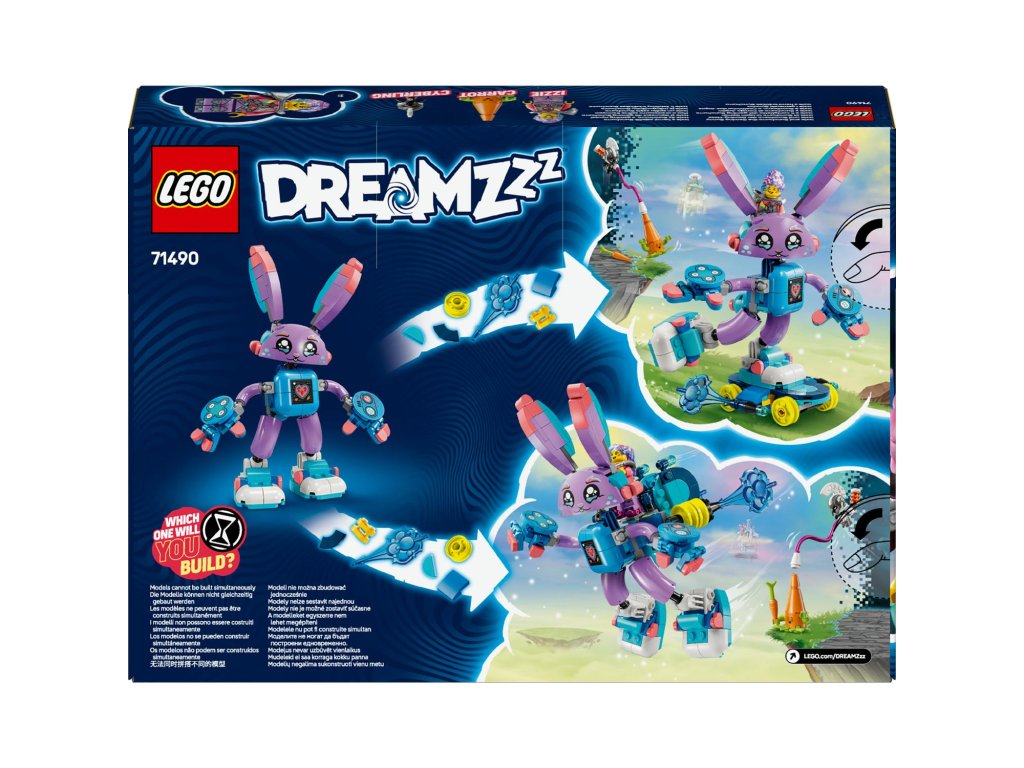 Vydejte se na napínavé dobrodružství se stavebnicí LEGO® DREAMZzz™ (71490) Izzie a herní králíček Bunchurro pro děti. Stavebnice je inspirovaná strhujícím televizním seriálem kluci a holky od 7 let si s ní užijí hodiny tvořivého hraní a pomůžou hrdince Izzie zachránit mrkvového Snílka před Kybervěcí. Malí snílci si užijí stavění figurky Bunchurra, parádní nové verze králíčka Bunchu, který má na břiše obrazovku s videohrou a nosí rukavice a tenisky v herními ovladači. Poté objeví hned 2 způsoby, jak model přeměnit. Model králíčka doplní skateboardem a raketovými motory, nebo úžasným jetpackem. Každá verze modelu králíčka je velmi pohyblivá. Pusťte se do kreativního hraní na postavy a vdechněte stavebnici život s minifigurkou Izzie, kteroulze připojit k zádům Bunchurra. Tento skvělý dárek pro děti a fanoušky televizního seriálu obsahuje návod na stavění vedený příběhem. Malí snílci se ponoří do napínavých dobrodružství plných akce s Izzie a Bunchurrem