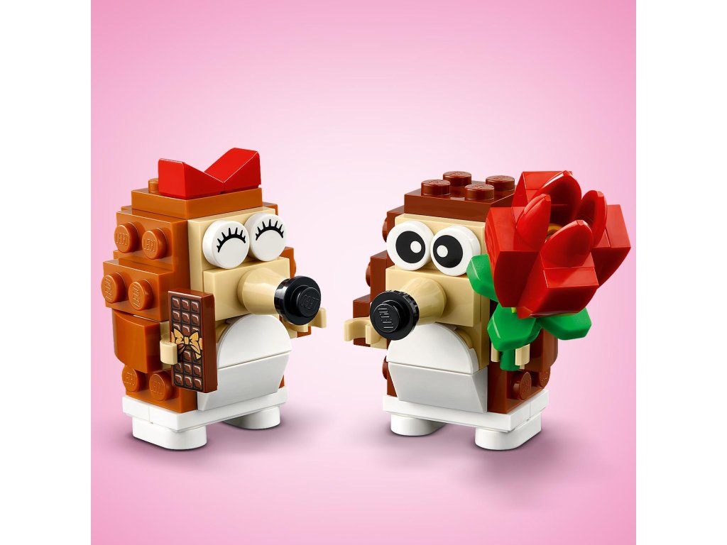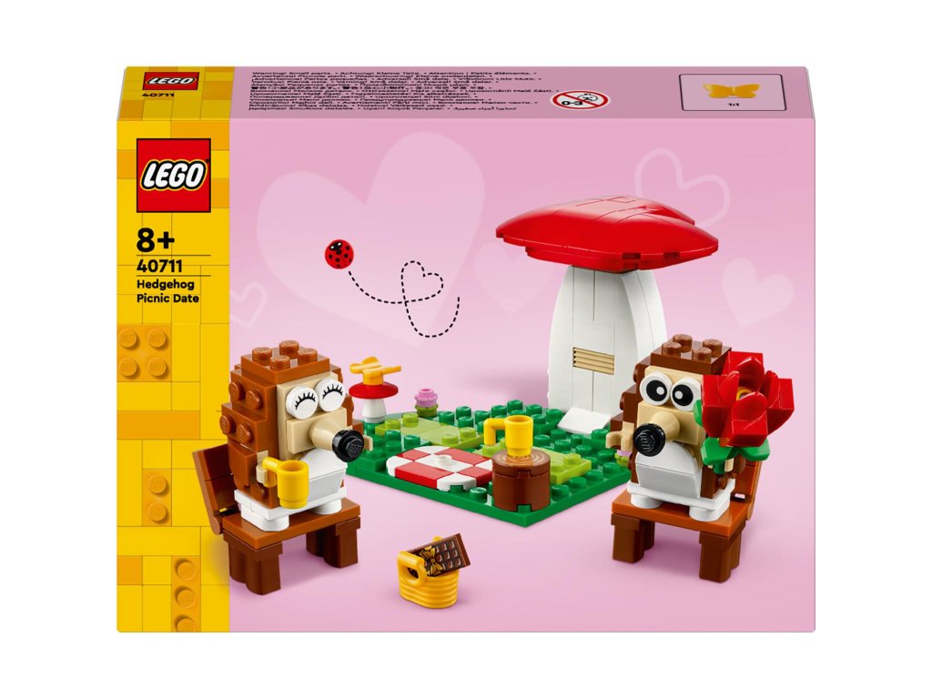 Oslavte jakoukoli výjimečnou příležitost s rozkošnou stavebnicí LEGO® (40711) Ježčí rande s piknikem se zvířátky, která je nabitá zábavnými funkcemi. Kluci a holky od 8 let si postaví a vystaví stavebnici se 2 ježky, kteří sedí pod houbou ve tvarusrdce na podložce na stavění ve tvaru srdce. Tato pestrobarevná stavebnice LEGO pro děti je plná zábavného obsahu. Ježky lze odejmout od lavičky a volně postavit. Mohou si také sednout na piknikovou dečku s růží, hrníčky, koláčem a žlutým motýlem. Hrne čky navíc mohou držet v tlapkách. Tato stavebnice představuje skvělý dárek z kostek LEGO k jakékoli výjimečné příležitosti včetně Valentýna. Lze ji kombinovat s dalšími stavebnicemi LEGO (prodávají se samostatně) a děti se tak mohou těšit na ještěvětší zvířecí dobrodružství. Až si děti dohrají, ježci se budou skvěle vyjímat na polici nebo nočním stolku.