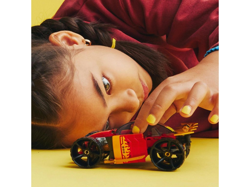 Stavebnice je dodávána s fantastickou minifigurkou Kaie, která je vybavena 2 zlatými katanami a kterou lze usadit do kokpitu auta NINJAGO. Inspiruje děti k přehrávání bezpočtu napínavých závodů v ulicích NINJAGO City.