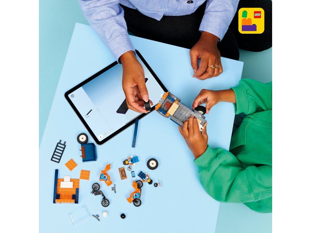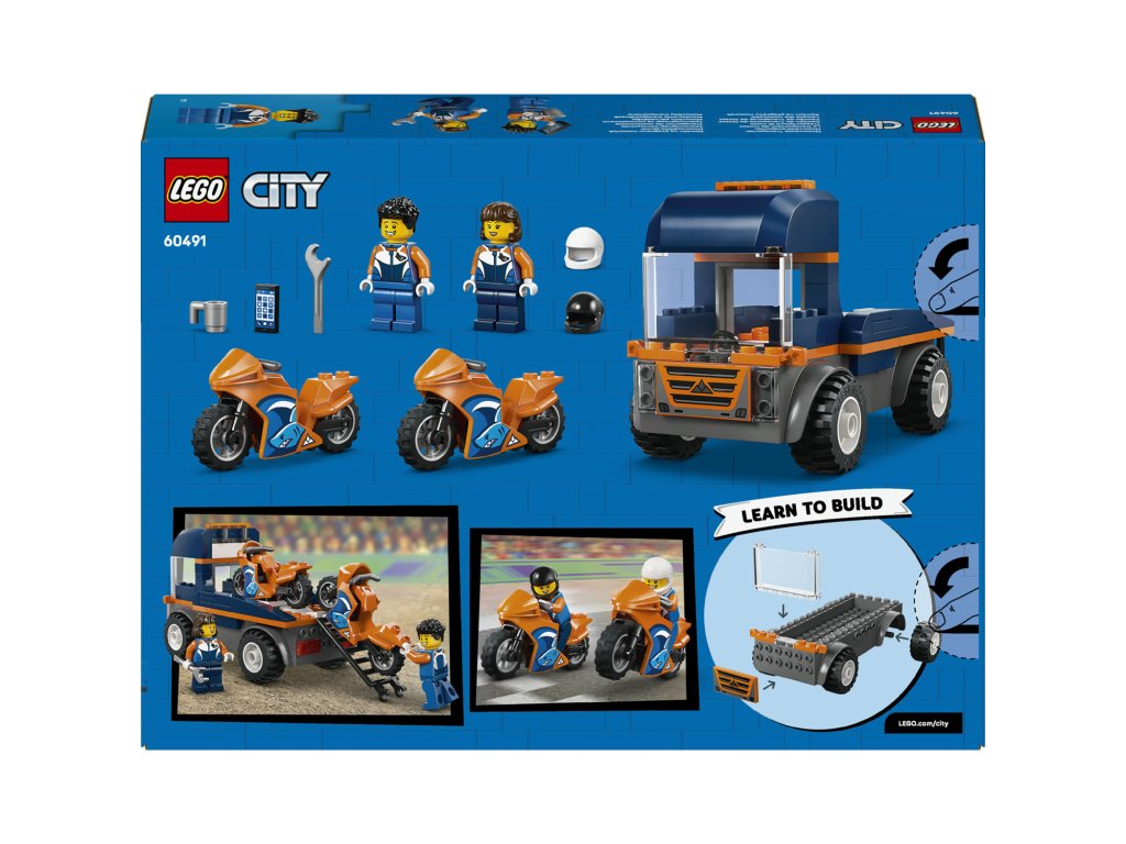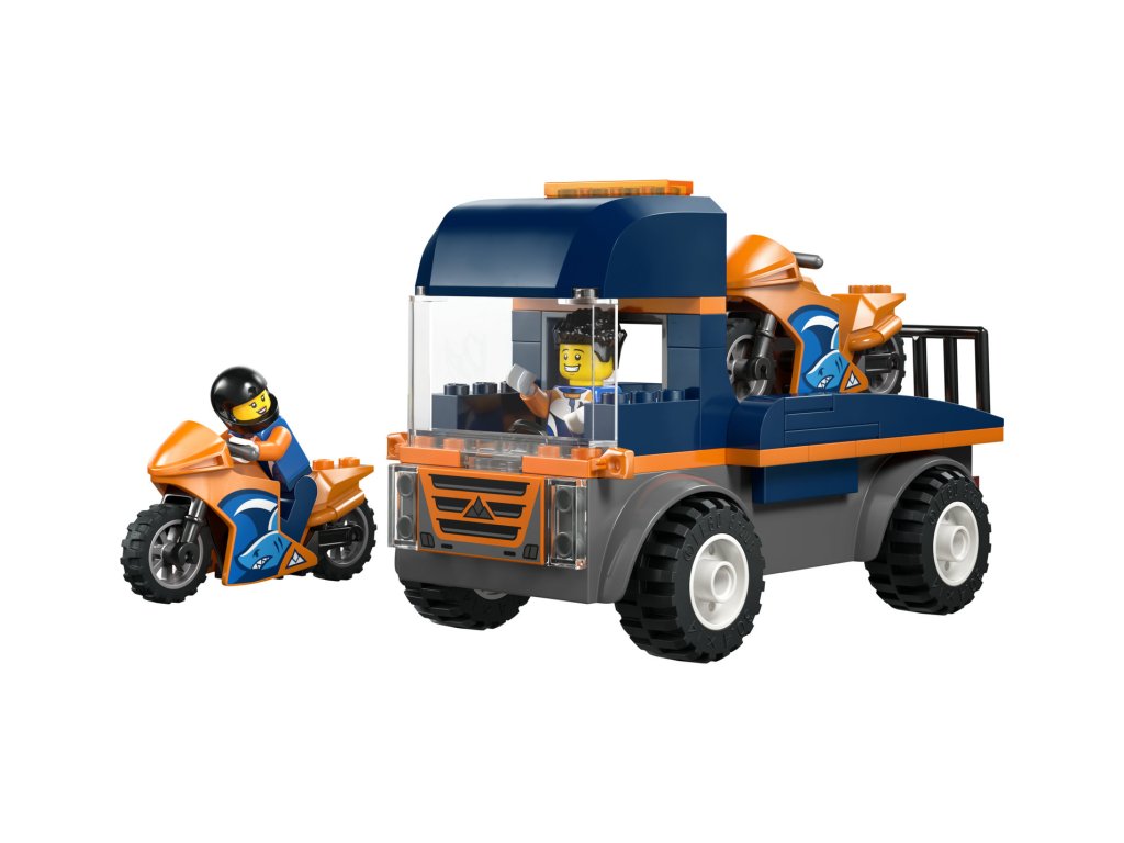 Uveďte děti od 4 let do světa nápaditého hraní se stavebnicí LEGO® City Kamion na přepravu motorek (60491). Tato stavebnice s autíčky obsahuje nákladní auto s plochou korbou a masivními gumovými pneumatikami, 2 sportovní motorky a 2 minifigurky závodníků v helmách. Děti můžou pomocí rampy nakládat a vykládat motorky, hrát si na strhující moto závody s minifigurku usazenou v kabině a užít si zábavná dobrodružství na silnici. Součástí této stavebnice je začátečnická kostka LEGO pro snadné stavění, jednoduché obrázkové pokyny a 3D návod v aplikaci LEGO Builder, která obsahuje nástroje přibližování a otáčení, aby si děti mohly během stavění prohlížet modely ze všech úhlů. Stavebnice představuje zábavný dárek k narozeninám nebo jakékoli jiné příležitosti pro děti, které milují závodění, nápadité hraní a vymýšlení příběhů. Zkombinujte ji s dalšími stavebnicemi z řady LEGO City (prodávají se samostatně) a zažijte ještě více napínavých závodů. Stavebnice obsahuje 88 dílků.