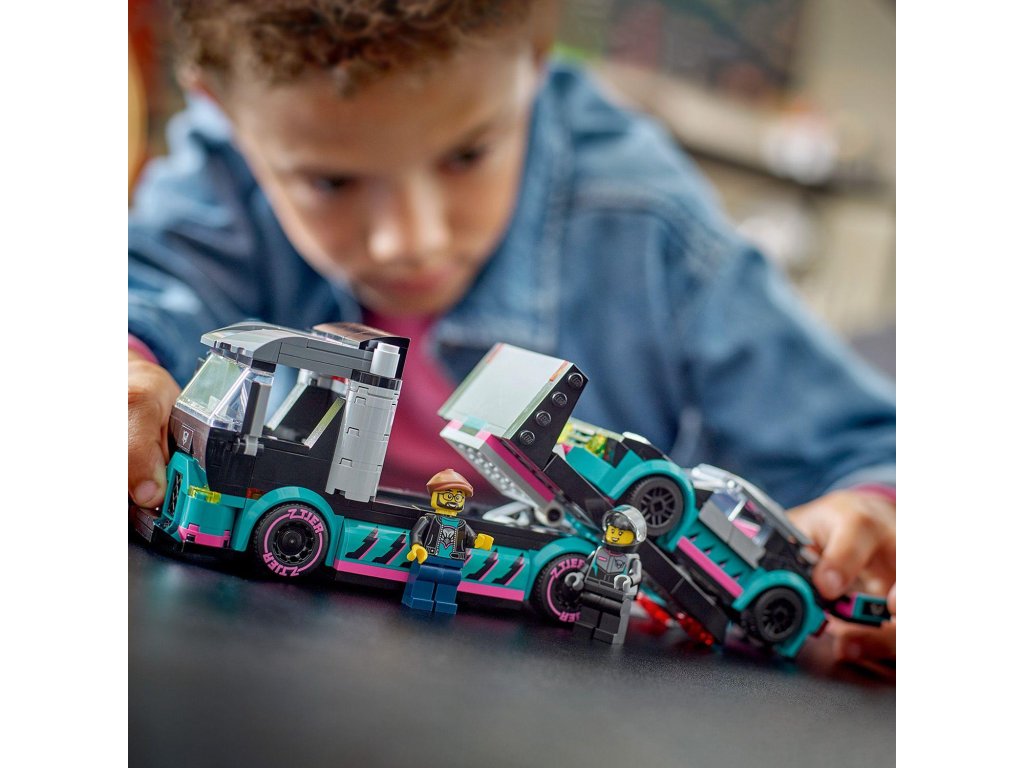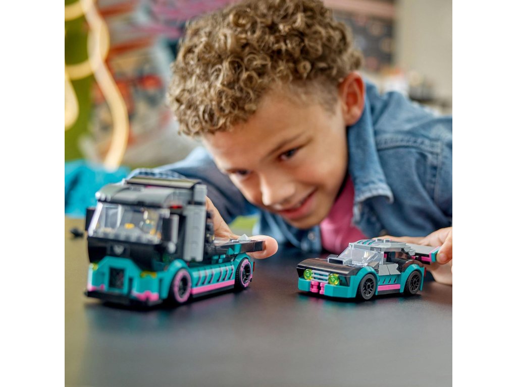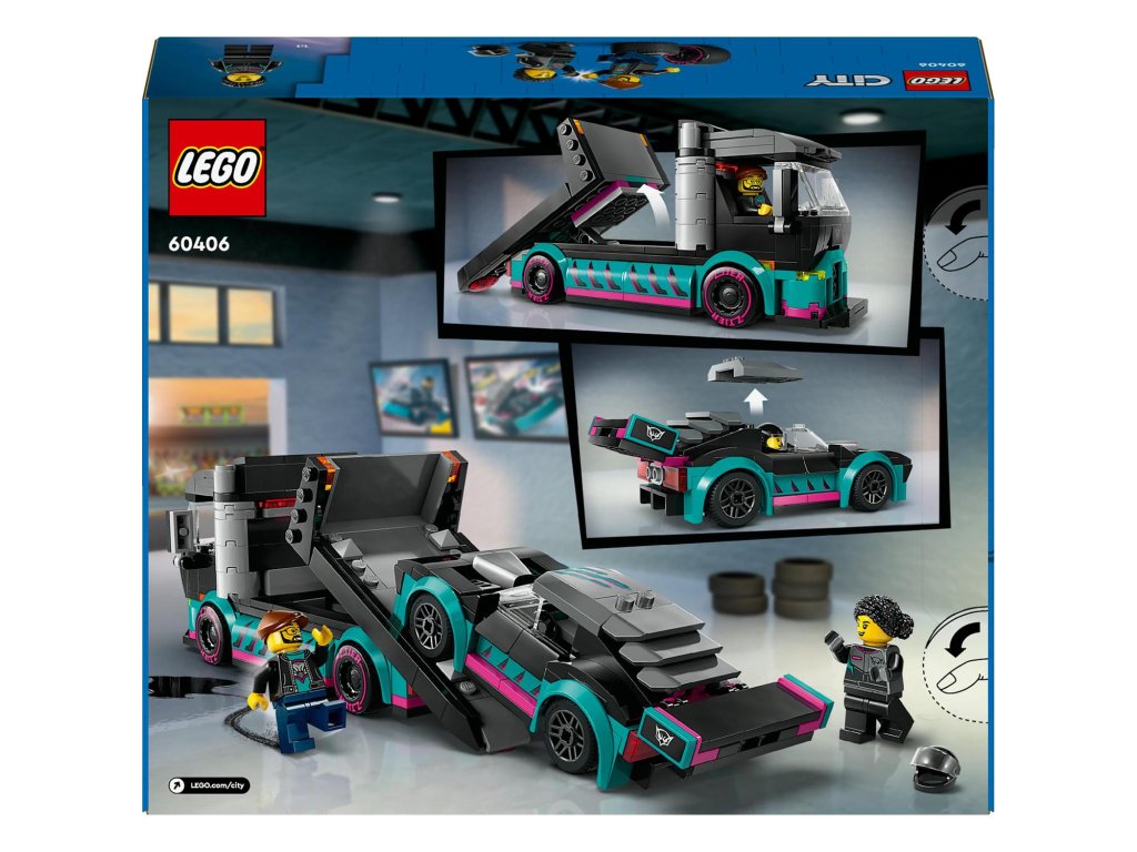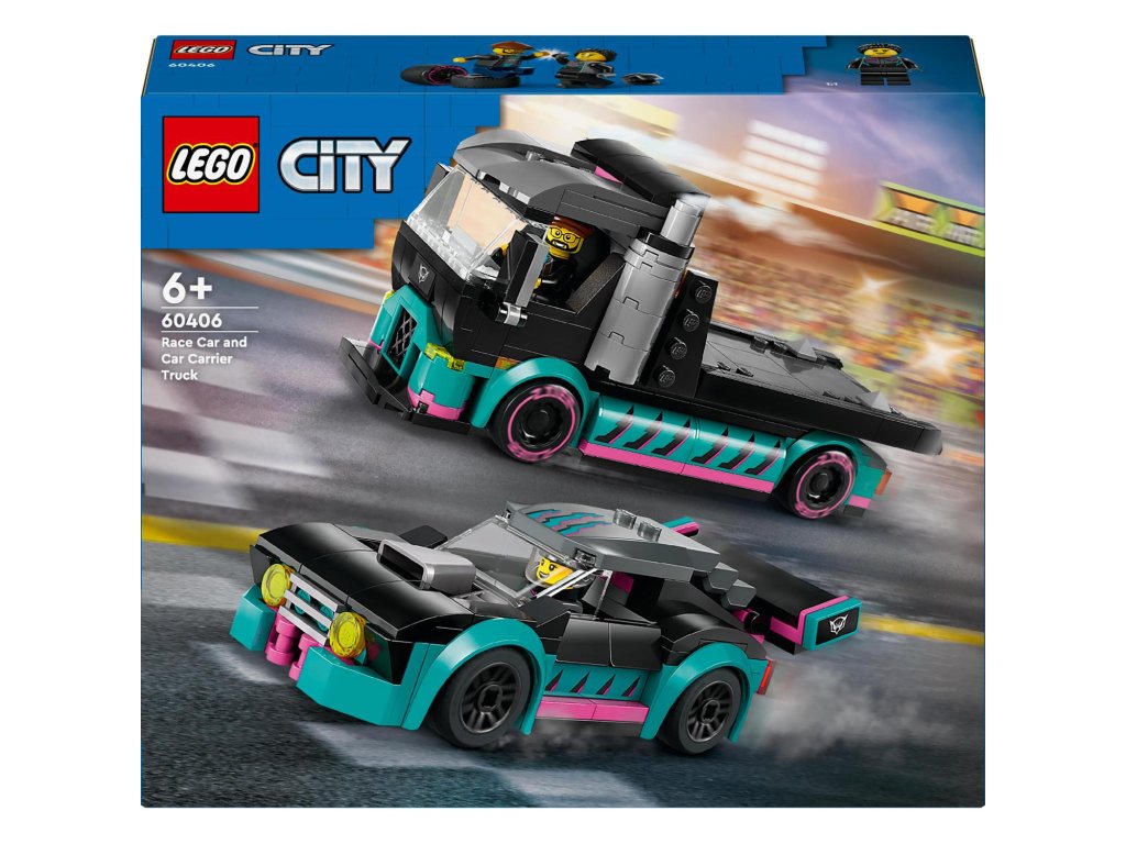 Vyrazte do akce se stavebnicí LEGO® City (60406) Kamión se závodním autem, který představuje perfektní dárek pro malé milovníky aut a kamiónů. Sada je určená pro děti od 6 let a najdete v ní závodní kamión s funkční nakládací rampou a parádní závodní auto se sníženým podvozkem a rozšířenými nárazníky. Nechybí ani minifigurka řidiče náklaďáku a závodního jezdce, se kterými vás čekají hodiny dobrodružství a zábavy.