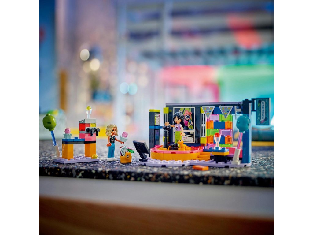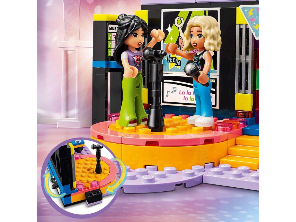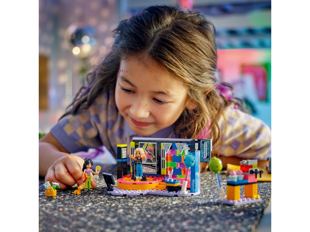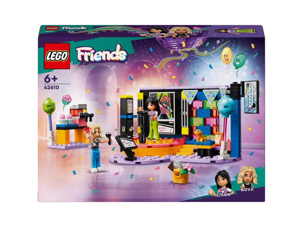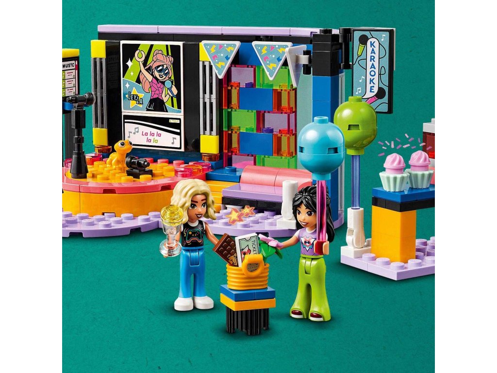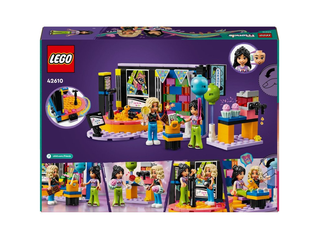 Stavebnice LEGO® Friends (42610) Karaoke párty představuje úžasný dárek pro děti od 6 let, které milují zpěv a vyprávění. Součástí je otáčecí pódium, mikrofony, odpočinková zóna a model výrobníku ledové tříště pro pořádnou narozeninovou karaoke párty! Nechybí 2 postavy LEGO Friends s výrazy zpěvu navíc, figurka gekona s spousta doplňků.