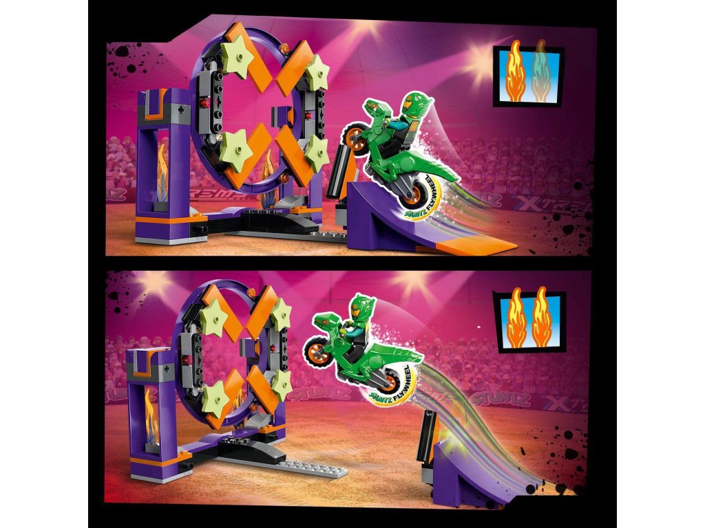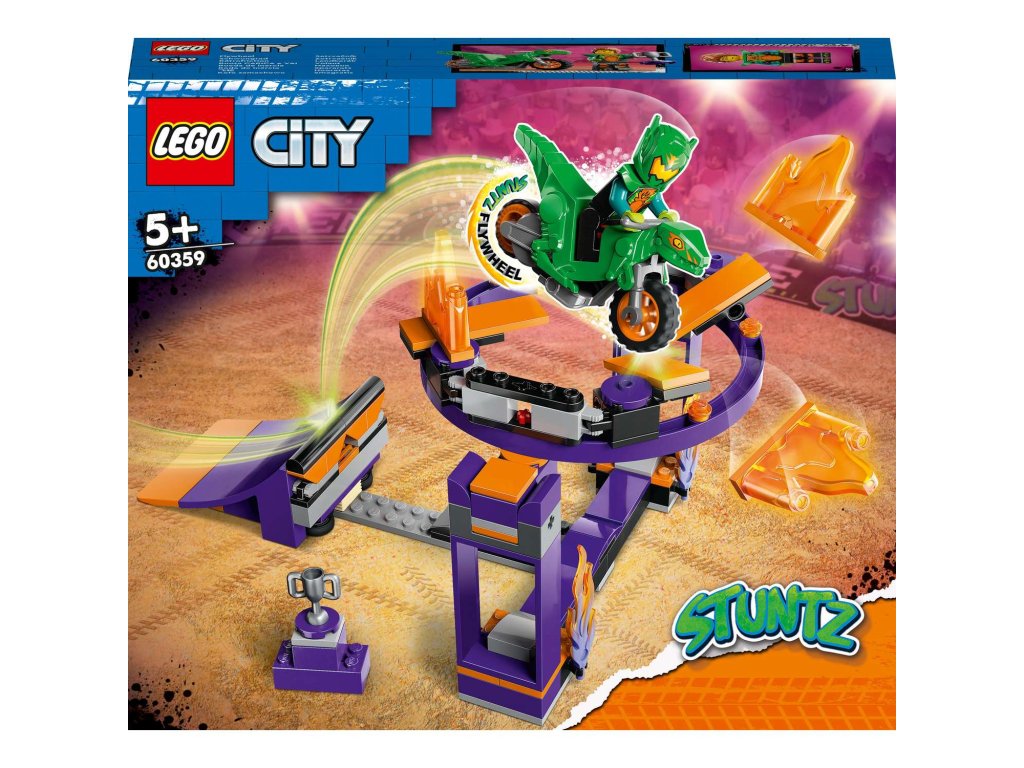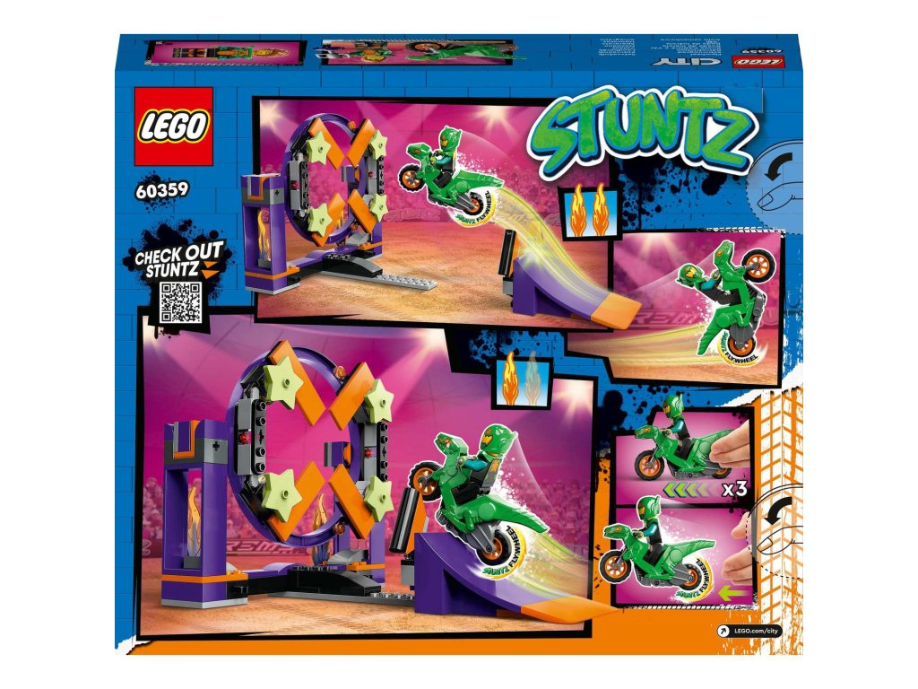 Stavebnice Kaskadérská rampa s obručí od LEGO® City (60359) zaručí hodiny úžasných kaskadérských triků a soutěží. Děti obruč umístí do vodorovné nebo svislé polohy, rozjedou kaskadérskou motorku a vyletí do vzduchu, kde předvedou superakční kousky. Sada obsahuje minifigurku jezdce Stuntz.