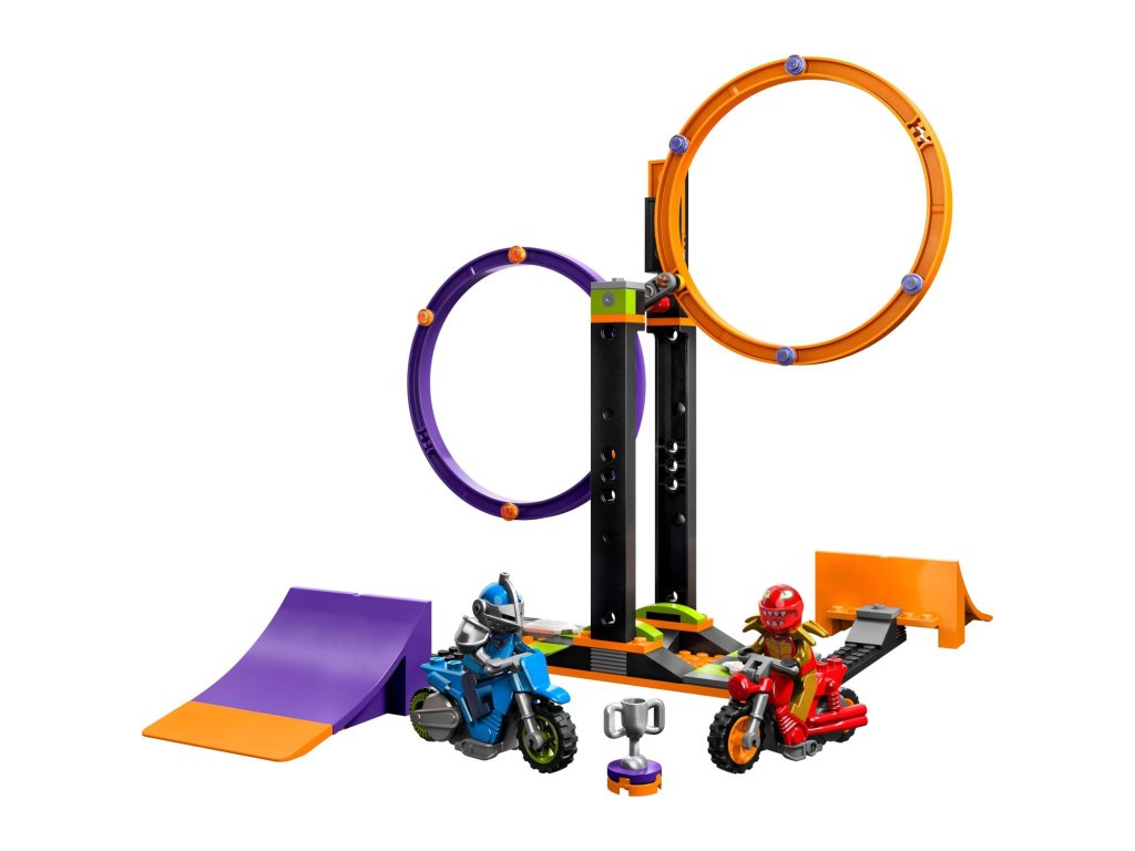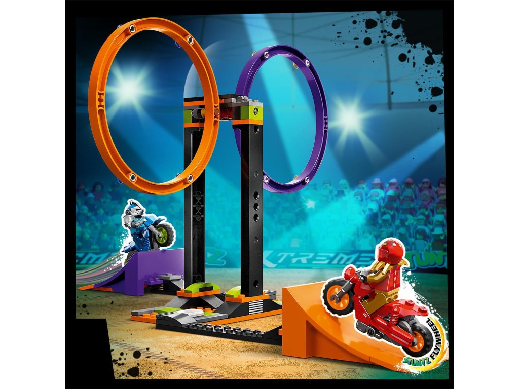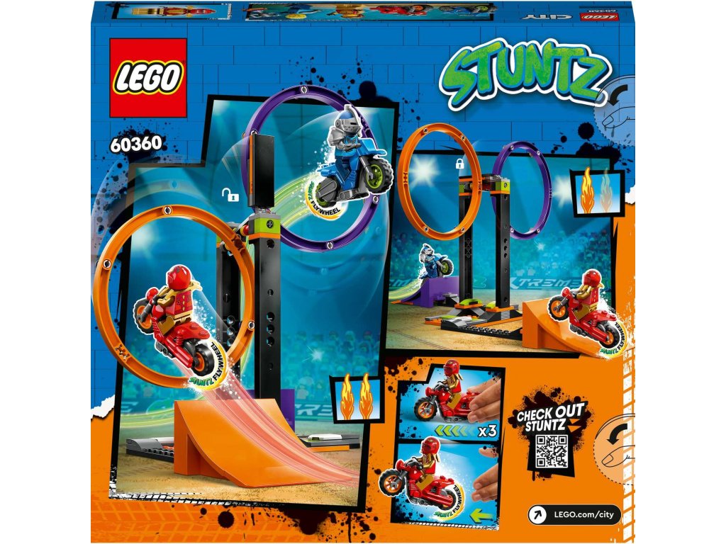 Děti od 6 let si zamilují plánování vzrušujících představení, her a soutěží s touto stavebnicí Kaskadérská výzva s rotujícími kruhy od LEGO® City (60360). Najdete v ní otáčivý dvojitý kaskadérský kruh, 2 rampy a 2 kaskadérské motorky se setrvačníkem. Stačí přidat 2 LEGO® City Stuntz jezdce na motorkách a zábava může začít!