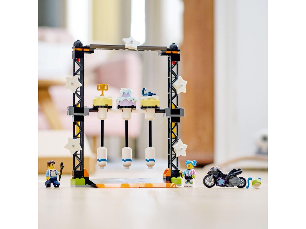 Děti se smyslem pro soutěživost si doslova zamilují stavebnici LEGO® City Kladivová kaskadérská výzva (60341), která obsahuje prvky svítící ve tmě. Jejich úkolem je překonat s motorkou se setrvačníkem překážku a získat cenu pro vítěze. O akci a napětí se postarají 2 oblíbené postavy ze seriálu LEGO City. Pro ještě větší porci kaskadérské akce lze stavebnici kombinovat s dalšími z řady LEGO City Stuntz.