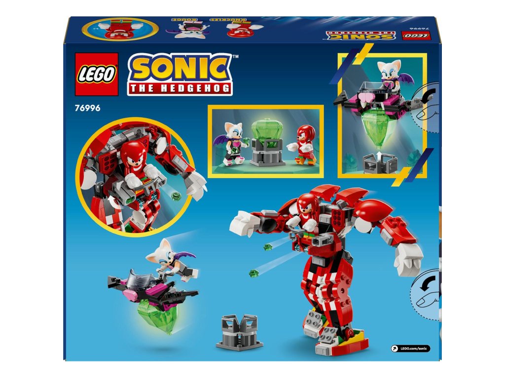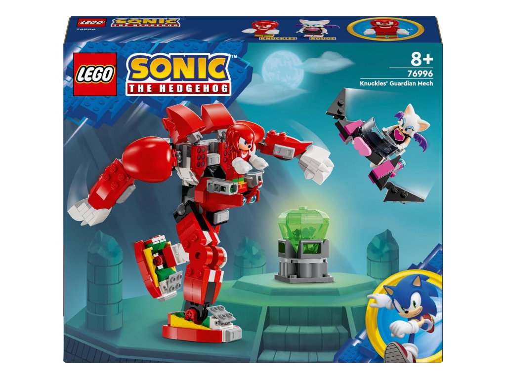 Fanoušci Sonica a děti od 8 let se mohou těšit na veselá dobrodružství se stavebnicí LEGO® Sonic the Hedgehog™ (76996) Knuckles a jeho robotický strážce. Sada je inspirována příběhy Sonica a dalších postav z této série videoher. Děti mohou Knucklesovi a Rouge vymyslet bezpočet úkolů, zatímco skládají stavebnici, a poté přehrávat napínavé scény s krádeží velkého smaragdu s kluzákem a opětovné záchrany s pomocí robota.