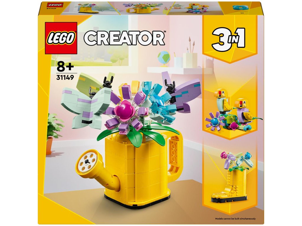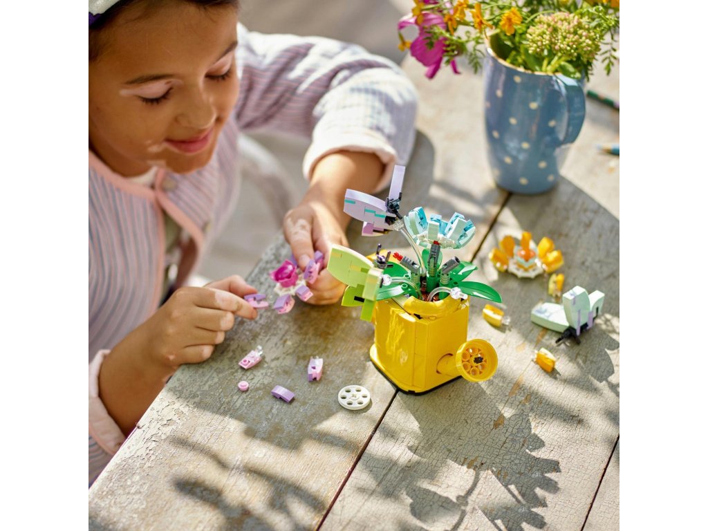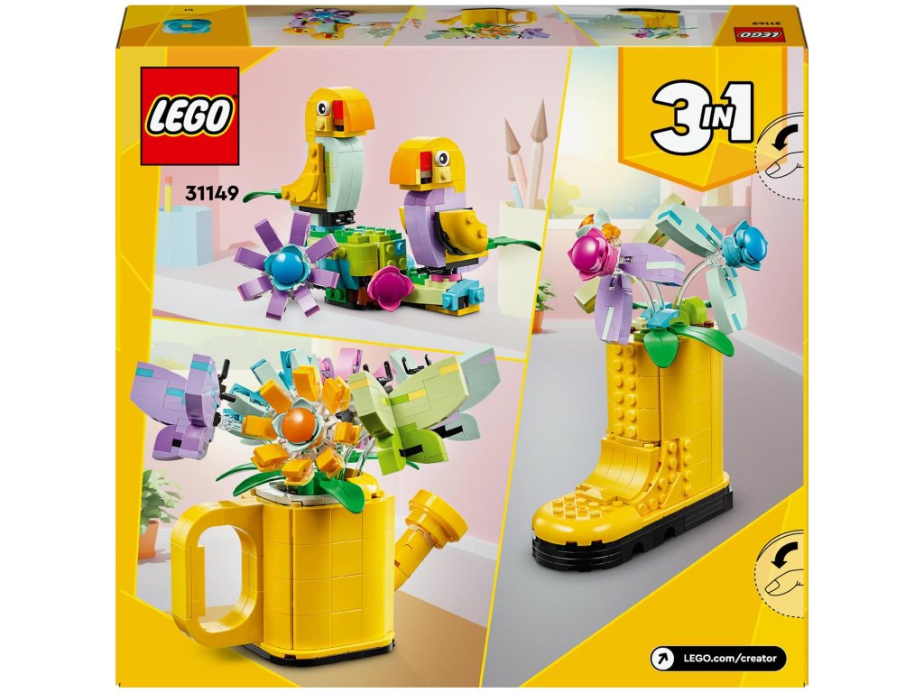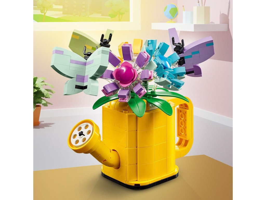 Se stavebnicí LEGO® Creator 3 v 1 (31149) Květiny v konvi na děti čekají hned 3 tematické modely inspirované přírodou, které si poskládají a po hraní vystaví. Postavte si z kostek žlutou konev s držadlem a hubicí. Uvnitř se tyčí 3 květiny s pohyblivými okvětními lístky a 3 motýli připevnění na průhledných tyčinkách, kteří vypadají, jako by létali.