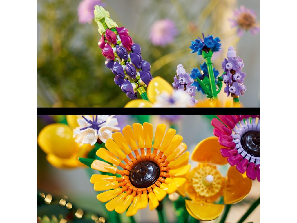 Kytice lučního kvítí je tvořena výhradně nápaditými dílky LEGO. Přináší 8 druhů lučních květin s nastavitelnými stonky. Začínající květináři a milovníci květin tak mohou dlouhé hodiny sestavovat a identifikovat různé druhy, jako je například chrpa, levandule, mákovník velšský, kerblík lesní, pérnatec netíkovitý, gerbera, stračka a vlčí bob. Po dokončení modelu si lze květiny vystavit v oblíbené váze, kde se stanou středobodem domácí výzdoby a zdrojem radosti v jakékoli místnosti.