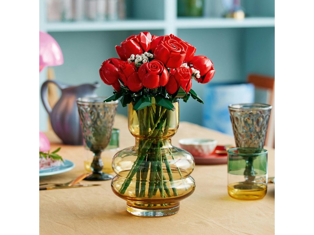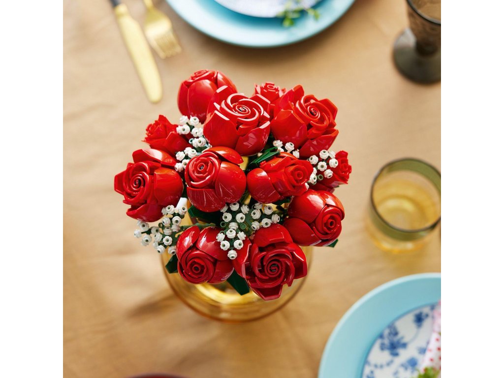 Radost ze stavění! Tato kytice z kostek LEGO obsahuje celkem 12 růží s dlouhými stonky, včetně 4 plně rozkvetlých růží, 4 růží v rozkvětu a 4 poupat, které se perfektně hodí k vystavení ve váze, a 4 větviček nevěstina závoje s malými bílými kvítky. Kytice je snadno sestavitelná a je elegantním doplňkem každého prostoru – navíc ji lze kombinovat s dalšími stavebnicemi z botanické kolekce LEGO.