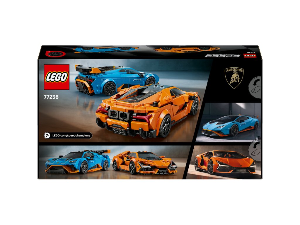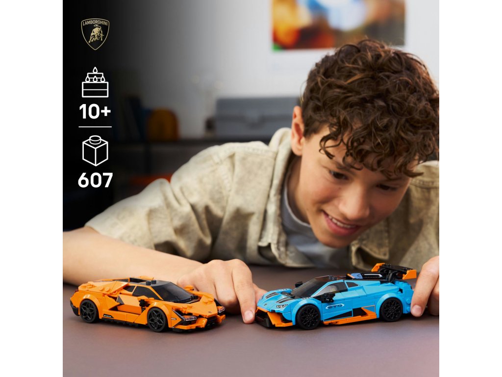 Revuelto s motorem V12 je vůbec nejvýkonnějším modelem této italské automobilky a Huracán STO je ideální na cesty i na tratě. Oba modely aut se pyšní autentickými detaily skutečných aut Lamborghini, včetně sání, křídel, futuristických světlometů a zadních světel ve tvaru Y. Součástí každého autíčka je minifigurka řidiče, kterou děti posadí za volant a vydají se s ní na závody.