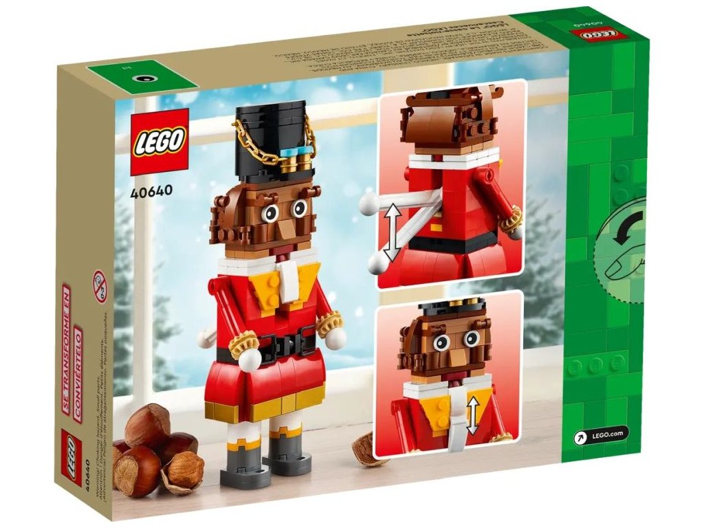 Oslavte svátky se stavebnicí LEGO® Louskáček (40640). Tuto LEGO interpretaci kultovní figurky Louskáčka lze postavit s mužskou i ženskou tváří a v balení najdete také pohyblivé paže a otevírací ústa. Tip na veselý dárek a model, který potěší děti, přátele a rodinu. Tato sváteční figurka přinese vánoční atmosféru do práce i domova.