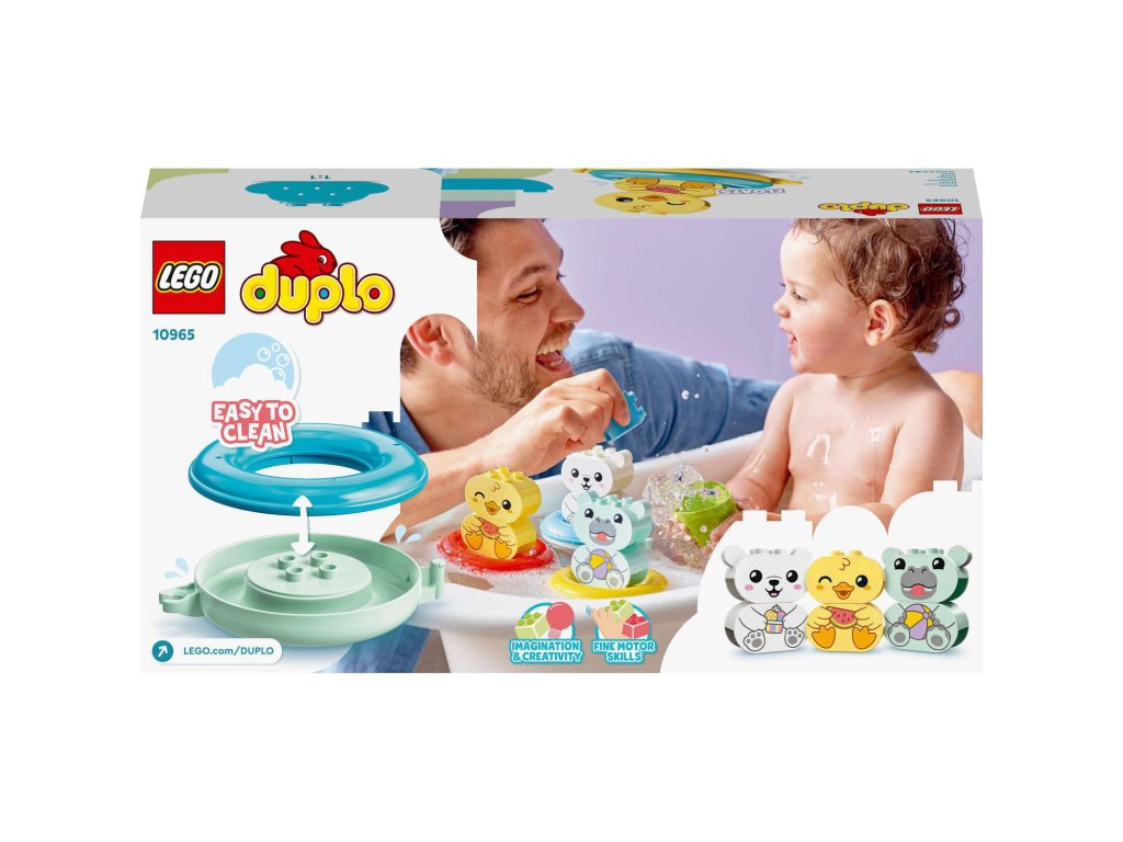 Se snadno omyvatelnou stavebnicí Legrace ve vaně: Plovoucí vláček se zvířátky (10965) z řady LEGO® DUPLO® Moje první si předškoláci od 18 měsíců užijí hraní i rozvoj dovedností.