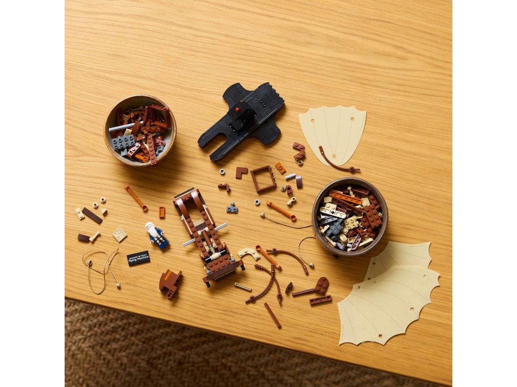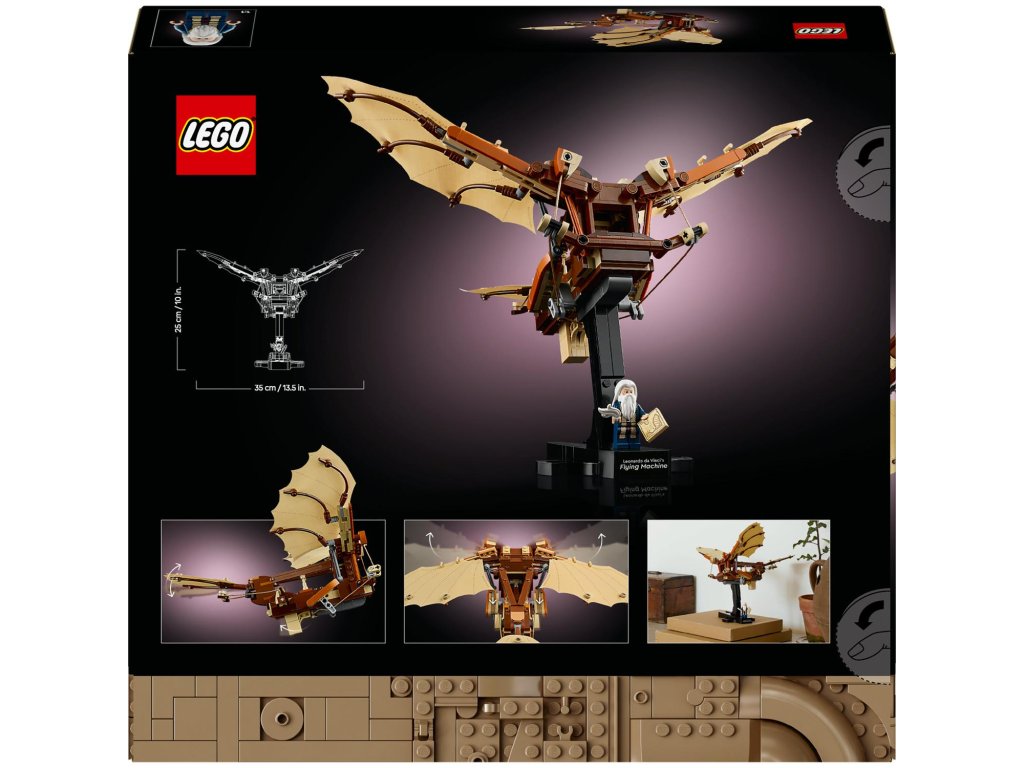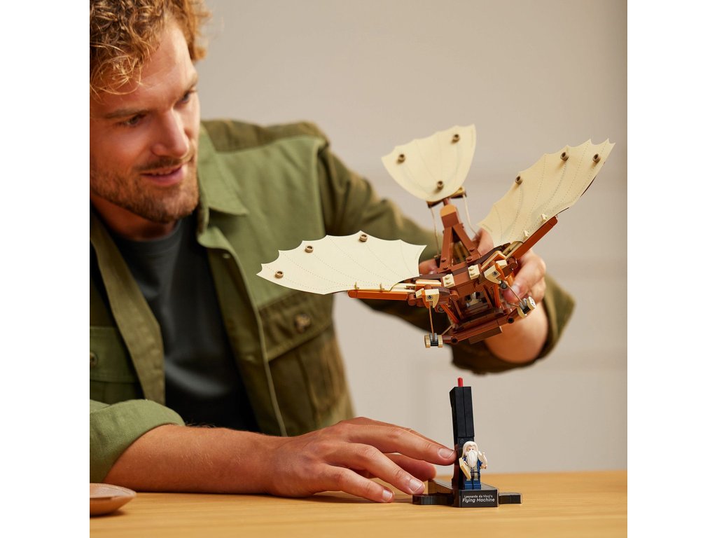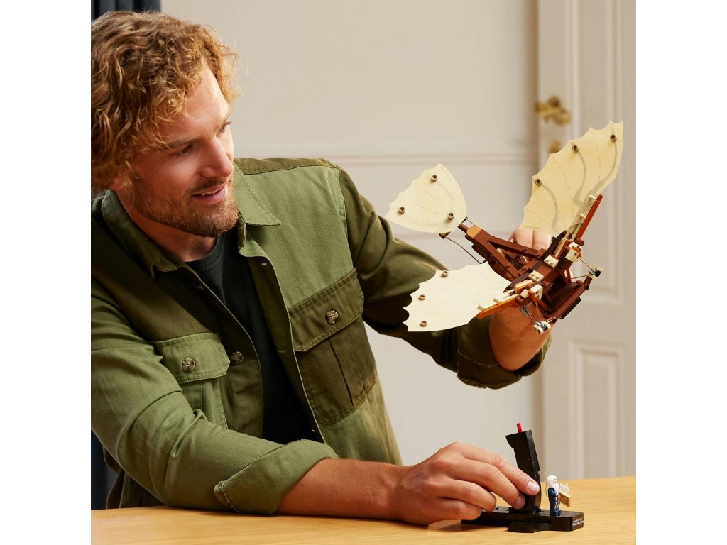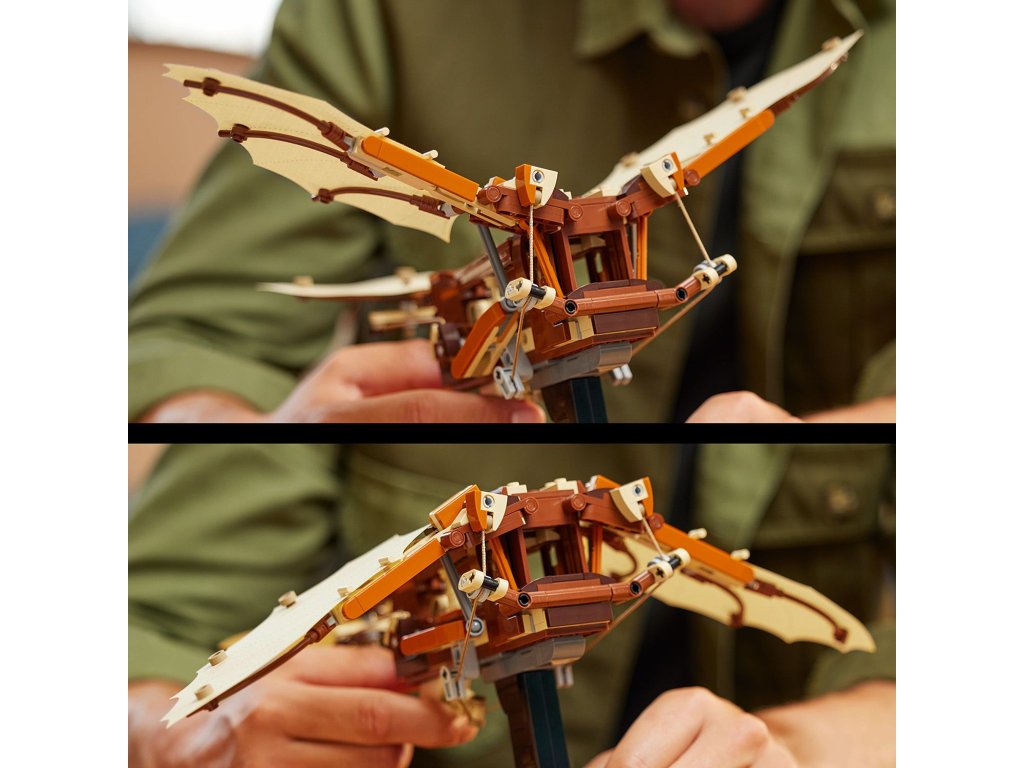 Ponořte se do dob evoluce leteckých vynálezů se stavebnicí LEGO® Icons (10363) Létající stroj Leonarda da Vinciho pro dospělé, který představuje nádherný výstavní kousek domů nebo do kanceláře. Postavte si da Vinciho vizionářskou ornitoptéru s otevřeným drakem letadla a křídly potaženými textilií, která jsou poháněna viditelnými provazy, panty a kladkami. Tento úchvatný model obsahuje podstavec na vystavení a minifigurku Leonarda da Vinciho, která drží brk a skicu. Využijte tuto stavebnici na maximum s aplikací LEGO Builder, ve které si můžete během stavění přibližovat, otáčet a prohlížet modely ve 3D. Aplikace vám také umožňuje spolupracovat jako tým, sledovat svůj pokrok a prozkoumávat a ukládat si další stavebnice. Udělejte si čas na relaxaci u promyšleného stavitelského projektu se sběratelskou stavebnicí ornitoptéry LEGO, která představuje skvělý nápad tip na dárek k Vánocům nebo narozeninám pro milovníky vědy a historie. Nenechte si ujít inspirativní nabídku kreativních stavebnic LEGO navržených speciálně pro dospělé.
