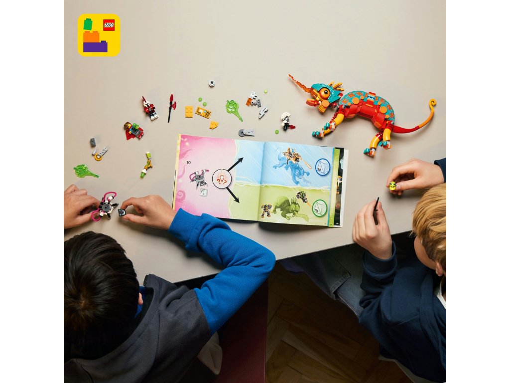 Inspirujte děti ke kreativitě se stavebnicí LEGO® DREAMZzz™ (71492) Mateo a jeho ohnivý chameleon, se kterou se kluci a holky od 7 let s hrdinou Mateem vydají zachránit Logana před zlotřilou Kybervěcí. Malí snílci si užijí spoustu zábavy při stavění figurky chameleona, kterou můžou sestavit hned 2 způsoby – postaví si ohnivého chameleoního strážce s blasterovou věží a 4 vystřelovači nebo rychlý tryskáč a minirobota. Chameleon má pohyblivou tlamu, hlavu, ocas, oči a nohy a oba modely jsou nabité skvělými detaily, včetně modulárních motorů, které jsou kompatibilní s ostatními stavebnicemi z řady LEGO® DREAMZzz™ 2025 (prodávají se samostatně). Minifigurky Matea a Zeroa a figurky Logana, Z-Fleka a Kybervěci vdechnou příběhu život a inspirujík nápaditému hraní. Tato fantastická stavebnice představuje skvělý dárek k narozeninám nebo jakékoli jiné příležitosti a součástí je návod na stavění vedený příběhem, se kterým se děti vrhnou rovnou do dobrodružství a stanou se hrdiny Světa snů.