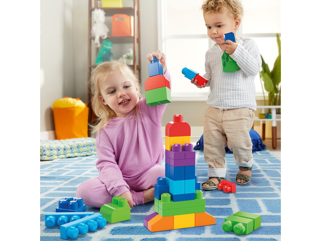 Malí stavitelé budou mít radost z jasně barevných First Builders kostiček Big Building bag od Mega Bloks. Z veselých barevných kostiček může váš šikula stavět vysoké věže, které budou sahat až do nebes nebo neporazitelné pevnosti, do kterých se žádný nezvaný host nedostane. Nechte pracovat jeho fantazii! Sada obsahuje 60 First Builders kostiček v základních barvách, které vaše dítě zabaví na celé hodiny a ekologický pytel neobsahující PVC pro snadné uskladnění. Sada je kombinovatelná s ostatními produkty od Mega Bloks First Builders. Vhodné pro děti od 1 roku.