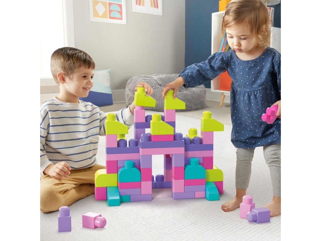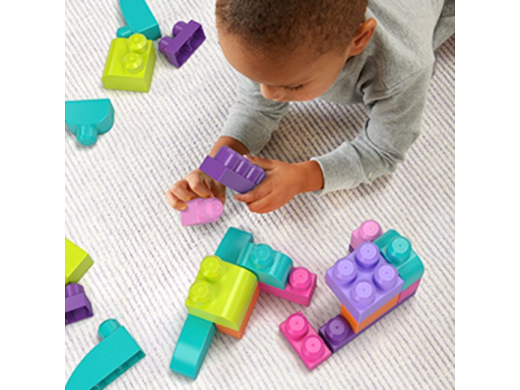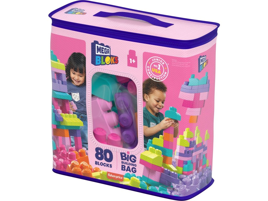 Rozvíjejte fantazii svého malého stavitele s Mega Bloks Velkým pytlem kostek - růžový, ve kterém najdete 80 velkých barevných kostek ideálních pro malé ručičky, které se dají lehce uchopit a snadno skládat na sebe i snadno rozebrat. Po skončení hraní lze kostky uložit zpět do pytle, snadno je uklidit a lze je kombinovat s jakoukoli hračkou nebo sadou kostek Mega Bloks.