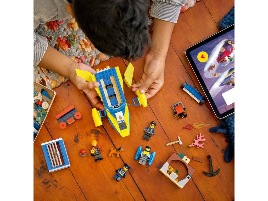 Stavebnice LEGO City Mise detektiva pobřežní stráže vyžaduje pro plnohodnotný herní zážitek chytrý telefon nebo tablet s bezplatnou aplikací LEGO s návody na stavění.