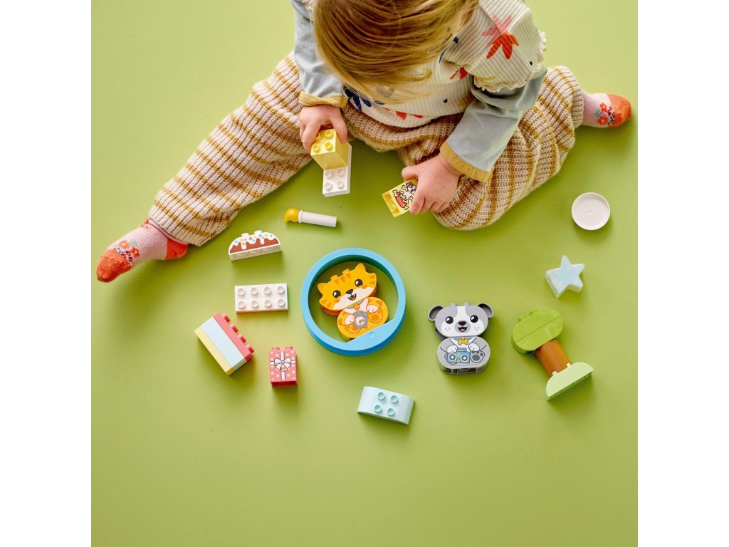 Děti od 18 měsíců si užijí spoustu zábavy, zatímco budou rozvíjet své schopnosti se stavebnicí Moje první štěňátko a koťátko vydávající zvuky (10977) od LEGO® DUPLO®.