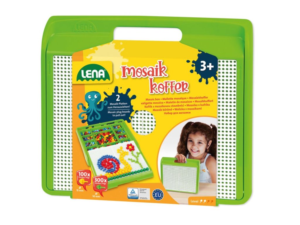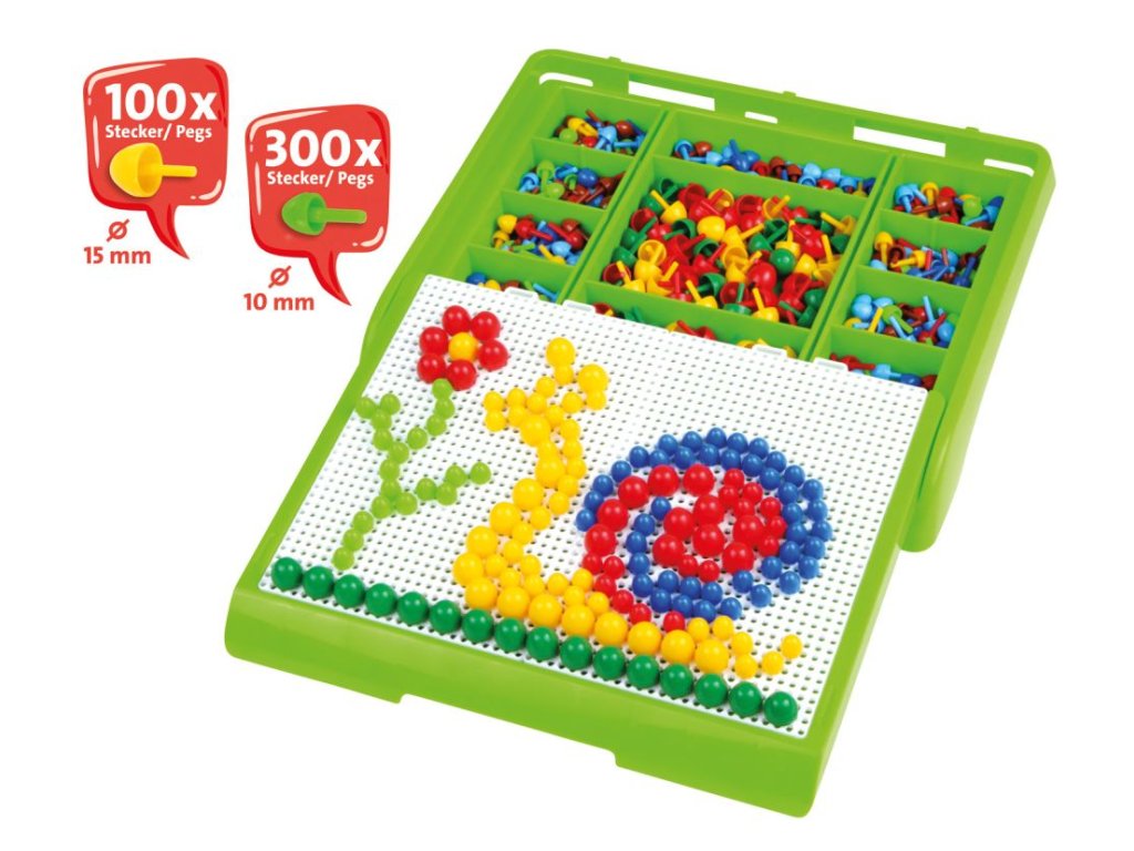 Přenosný úložný kufřík s vysouvacími panoramatickými deskami pro vkládání kolíčků. Kufřík slouží zároveň k uložení kolíčků. Kufřík obsahuje 300ks barevných kolíčků 10mm a 100ks barevných kolíčků 15mm.