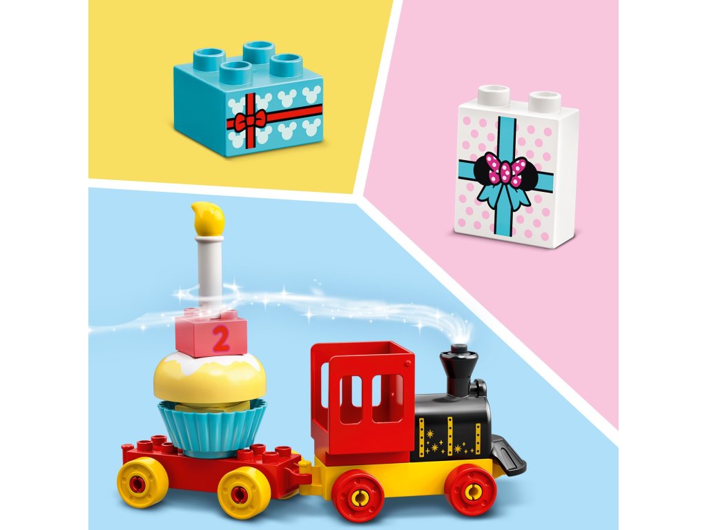 Oslavte narozeniny svého dítka ve velkém stylu se sadou LEGO® DUPLO® | Disney Narozeninový vláček Mickeyho a Minnie (10941). Stavebnice nabízí spoustu aktivit podporujících vývoj dětí, které si můžete užívat spolu s oblíbenými hrdiny od Disneyho. Jedná se o skvělý způsob, jak předškoláky seznámit s čísly, kreativním stavěním a pohádkovým světem od Disneyho!