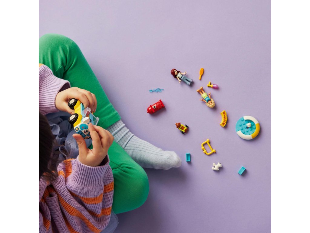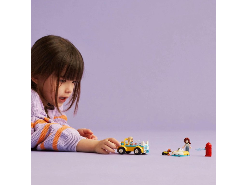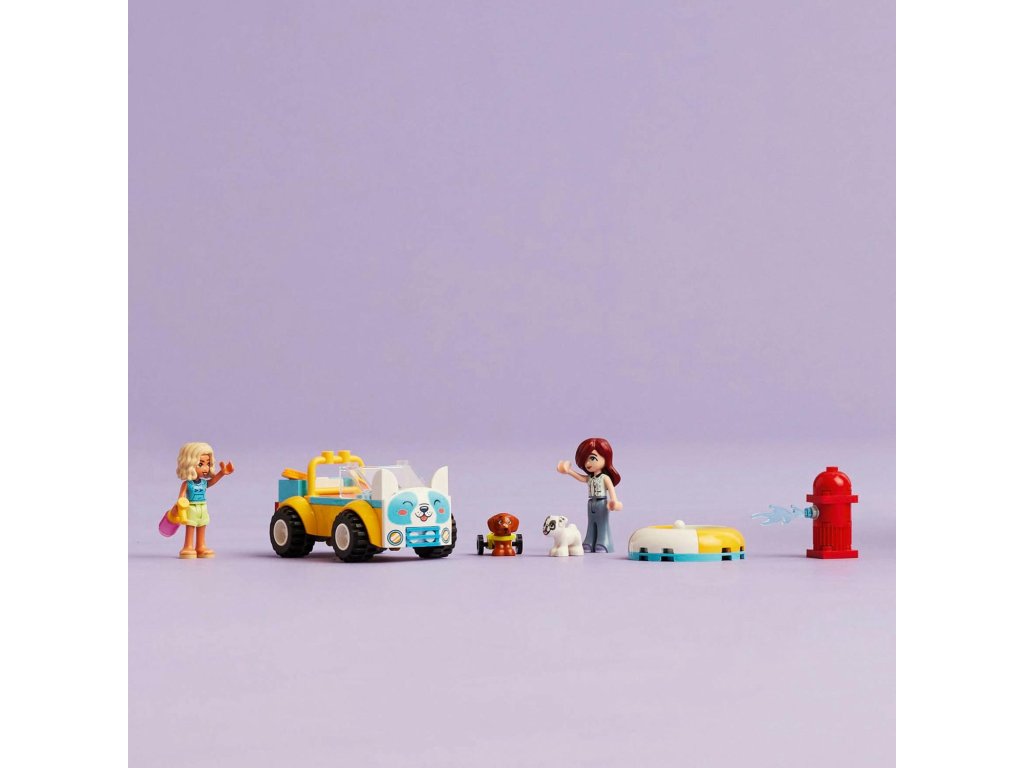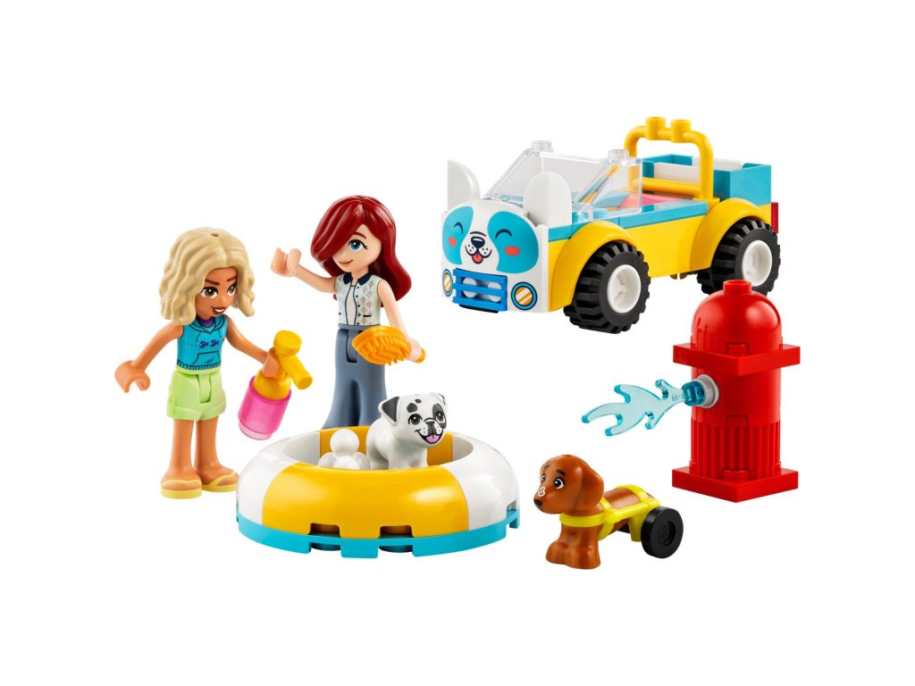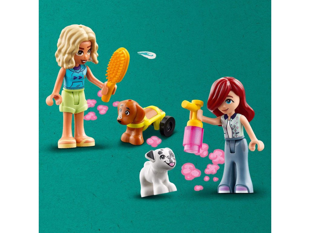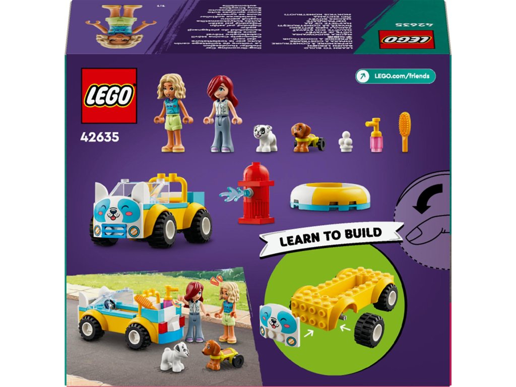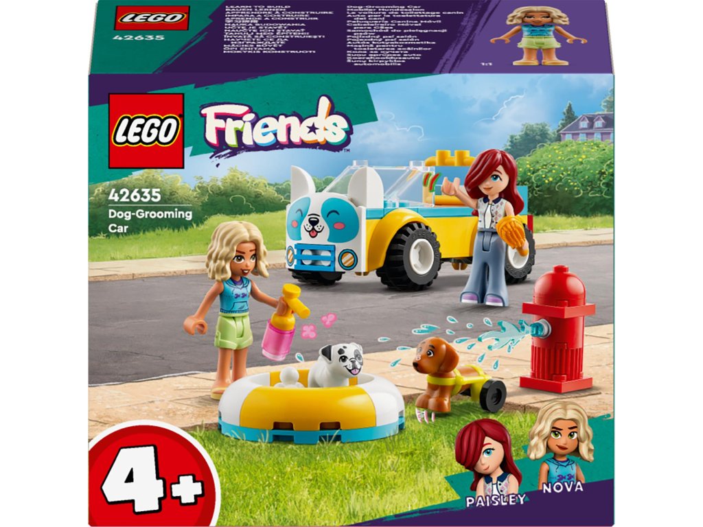 Stavebnice LEGO® Friends (42635) Pojízdný psí salón je skvělý dárek pro děti od 4 let, které se rády starají o zvířátka. Děti si užijí hodiny zábavy se 2 minipanenkami, 2 figurkami pejsků, sestavitelným vozidlem, bazénkem a spoustou doplňků pro péči o domácí mazlíčky. Malí milovníci zvířat pomůžou Paisley a Nově umýt a vykartáčovat 2 štěňátka – Pickla a Juno. Užijí si spoustu zábavy při vkládání pejsků do bazénku na koupání. Vezměte si šampon a kartáč a pomozte pejsky umýt. Pickle přímo miluje bublinky na čumáčku! Až budou pejsci čistí, naložte výbavu do pojízdného salonu a připravte se na cestu k dalšímu zákazníkovi. Stavebnice LEGO 4+ jsou navržené tak, aby dětem přinesly rychlý a zábavný stavitelský zážitek. Jsou dodávány s praktickouzačátečnickou kostkou – pevným podstavcem, na kterém si děti postaví scénu. Nechte se s dítětem na svém stavitelském dobrodružství provést intuitivní aplikací s návody LEGO Builder, která vám umožní přibližovat a otáčet 3D modely, ukládat stavebnice a sledovat postup.