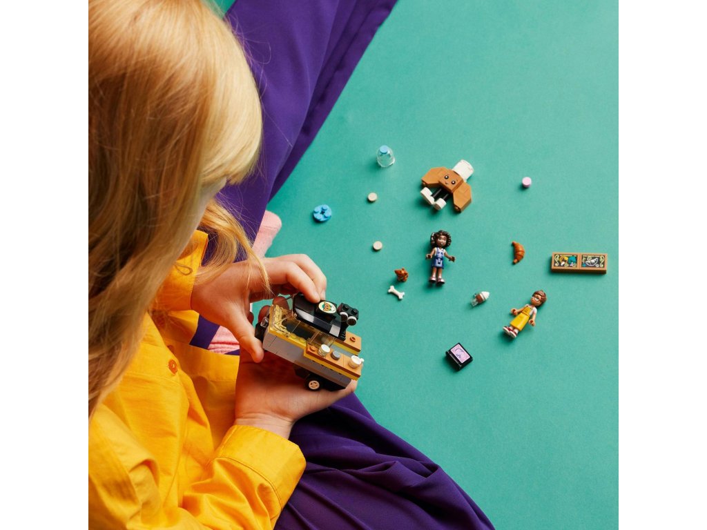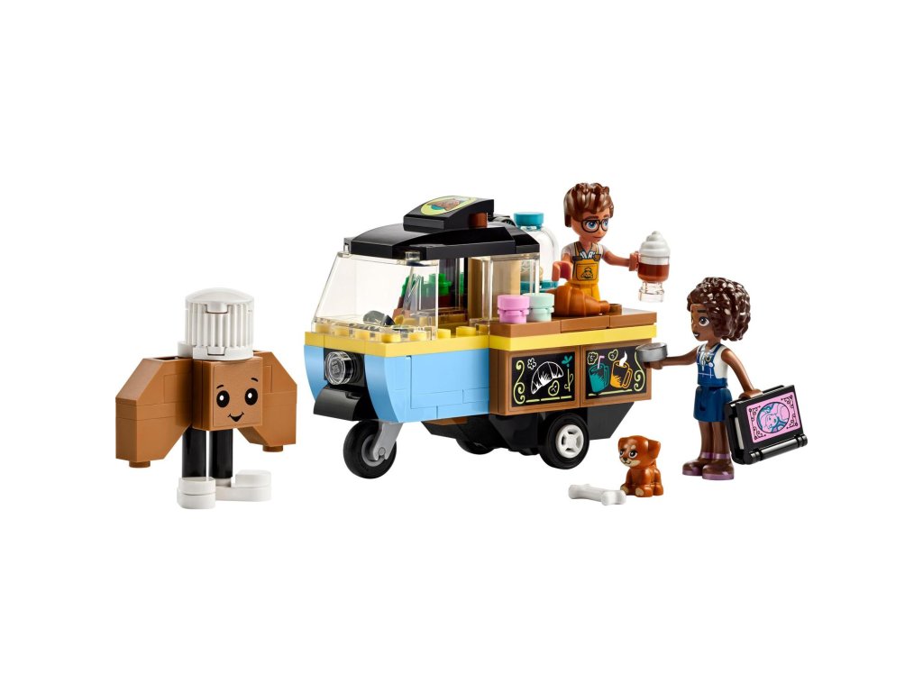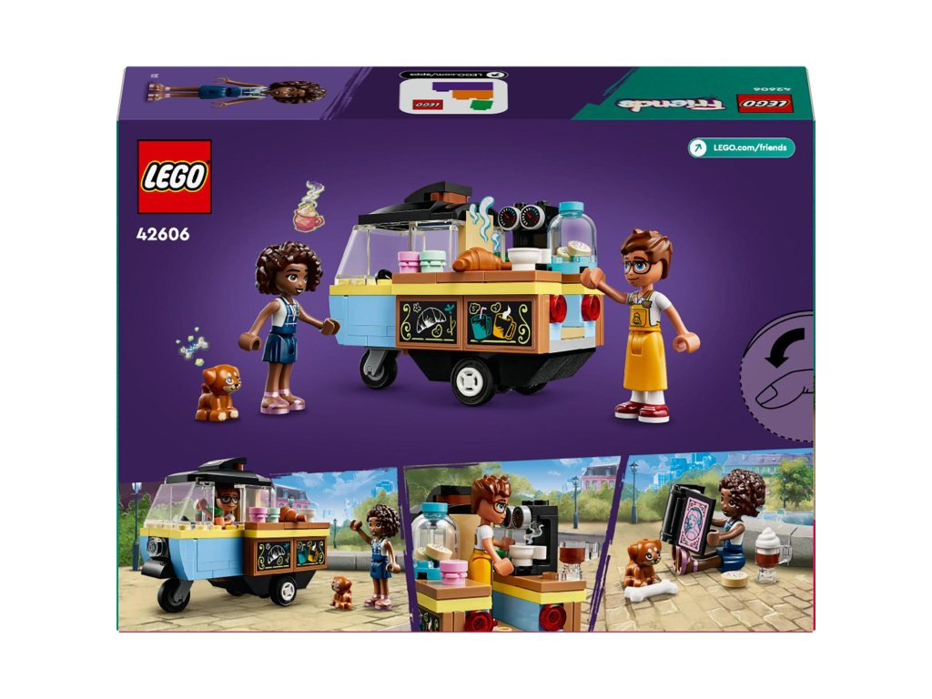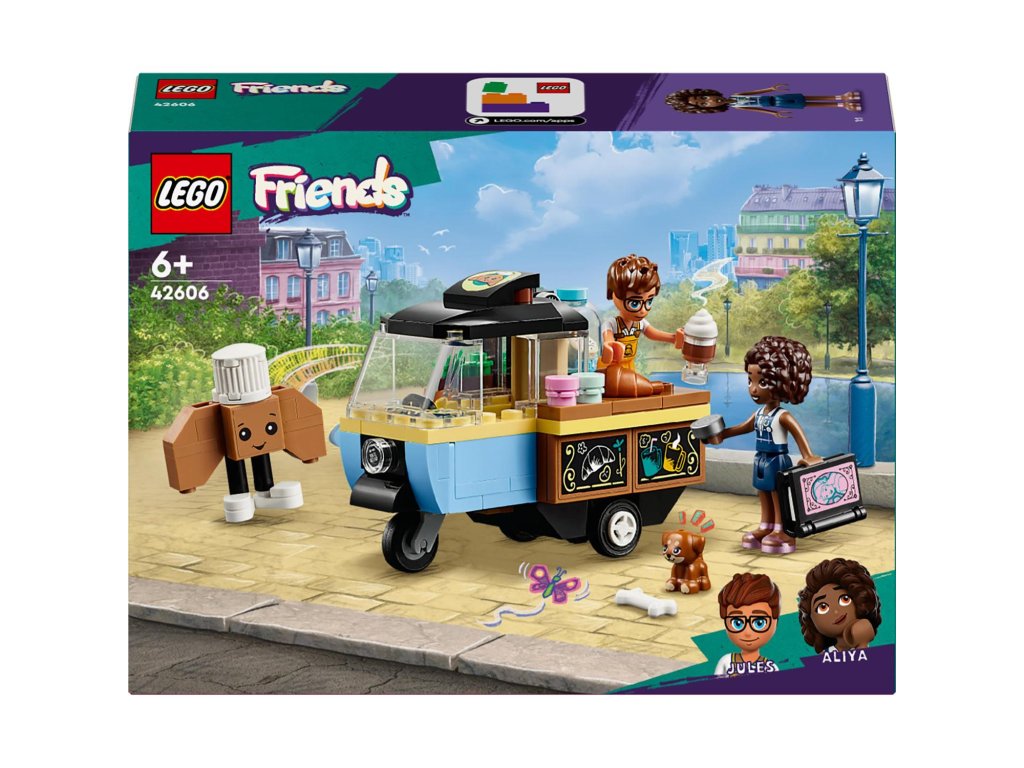Darujte malým stavitelům od 6 let inspirativní stavebnici LEGO® Friends (42606) Pojízdný stánek s pečivem. Děti, které mají rády hraní rolí, povypráví příběh o tom, jak Aliya navštíví stánek s pečivem se svou fenkou Airou. Součástí stavebnice jsou 2 minipanenky, pejsek, stánek, maskot pekárny a doplňky.