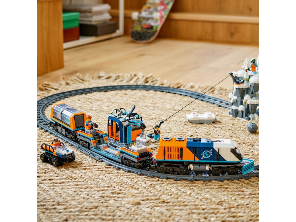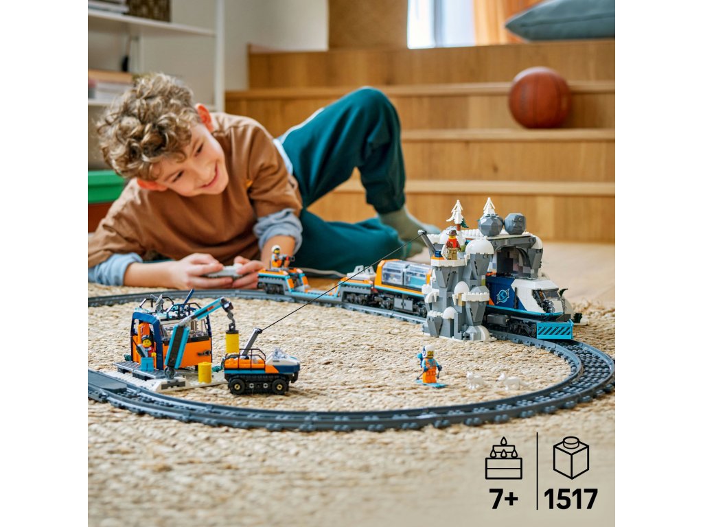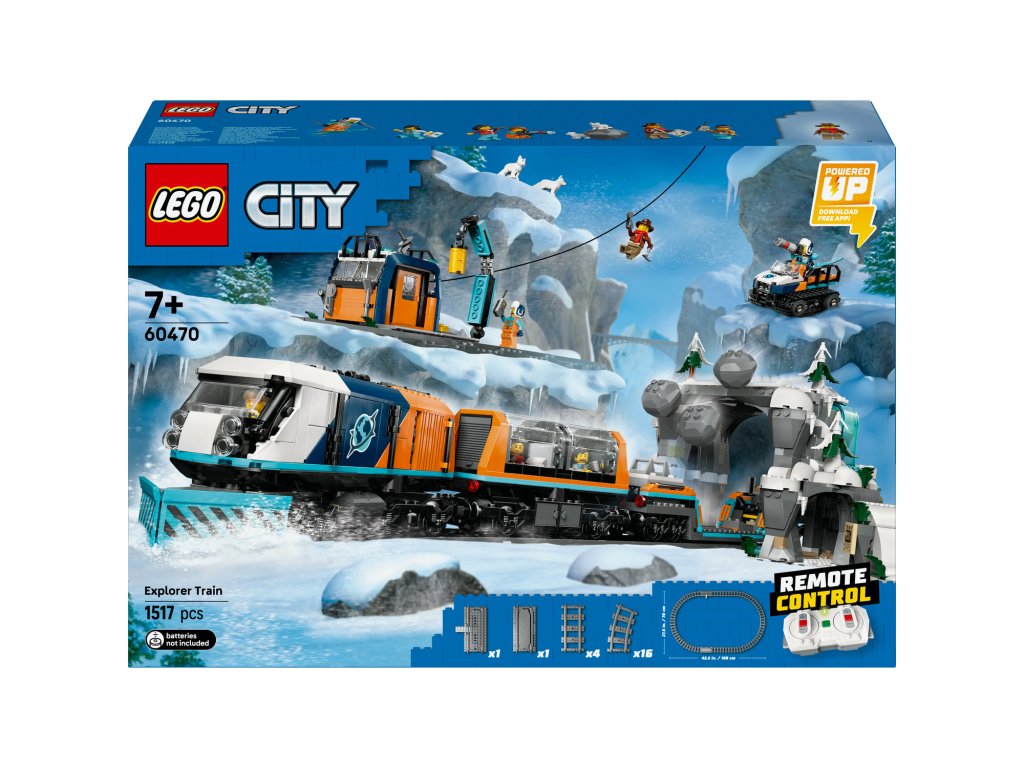Potěšte fanouška STEM hraček stavebnicí LEGO® (60470) Polární expres pro průzkumníky Arktidy. Tato prémiová stavebnice pro děti od 7 let obsahuje dálkově ovládanou lokomotivu LEGO se sněžným pluhem, panoramatický osobní vagón, valník a sněžný traktor. Děti si užijí zábavu s 22 dílky vlakových kolejí, horským tunelem s padajícími kameny, základnou a důlní jeskyní. Přidejte minifigurky Johnnyho Thundera a 5 průzkumníků, 2 figurky polárních lišek a dobrodružství může začít. Tento model vláčku obsahuje tištěný návod na stavění a digitální návod na stavění v aplikaci LEGO Builder. Děti si v ní můžou přibližovat a otáčet modely ve 3D, ukládat stavebnice a sledovat svůj postup při stavění. Stavebnice LEGO City obsahují parádní vozidla, realistické stavby a zábavné postavy, které inspirují ke kreativnímu hraní. Děti můžou tuto stavebnici LEGO City zkombinovat s dalšími kreativními hračkami z řady LEGO City (prodávají se samostatně) a rozšířit tak svět herních možností. Stavebnice obsahuje 1517 dílků.