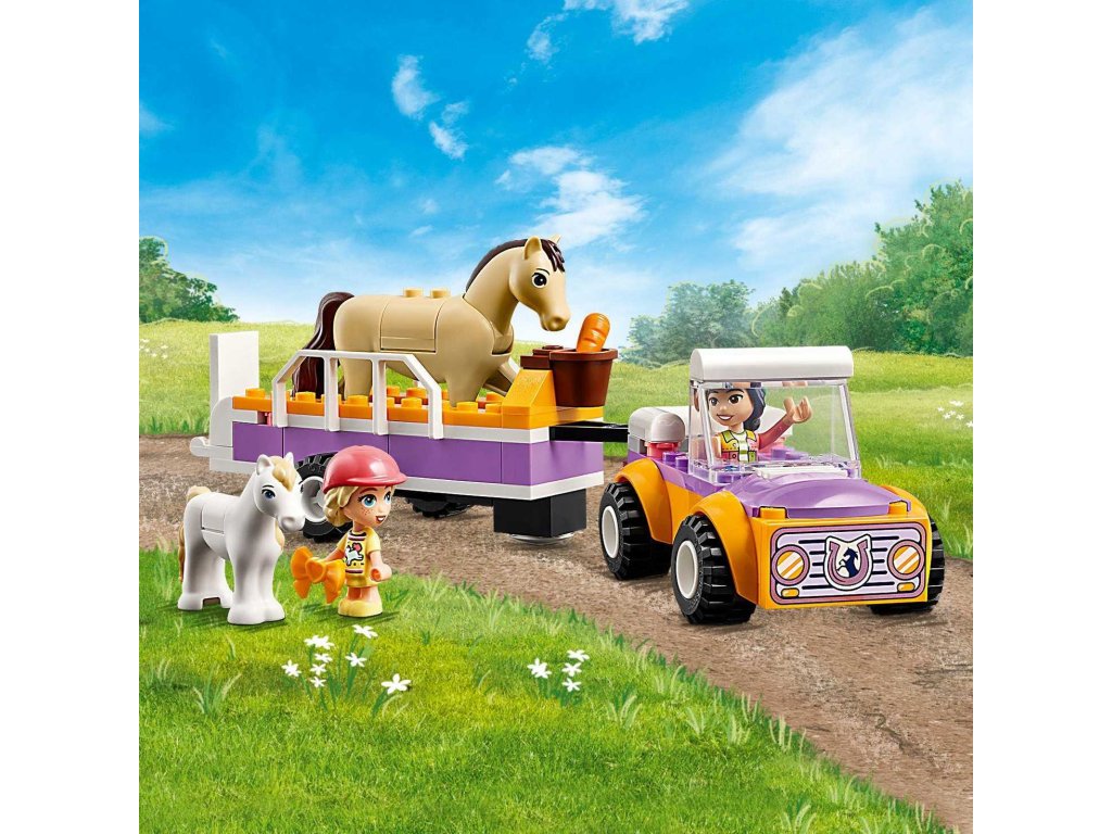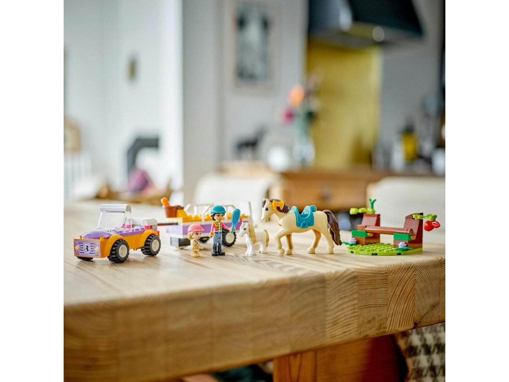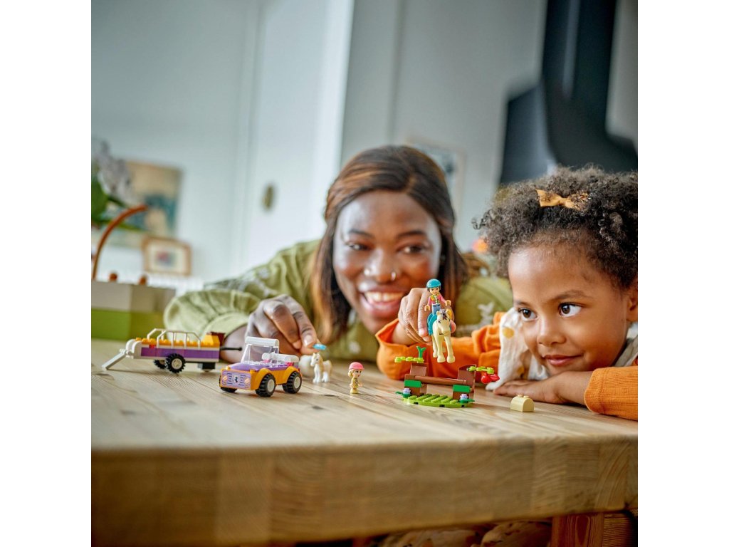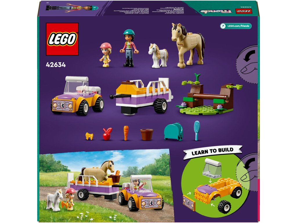Stavebnice LEGO® Friends (42634) Přívěs s koněm a poníkem pro děti od 4 let nastartuje hodiny kreativního hraní. Děti, které milují příběhy, si postaví model auta a přívěsu a pustí se do vyprávění o dobrodružstvích kamarádek Liann a Zoyi.