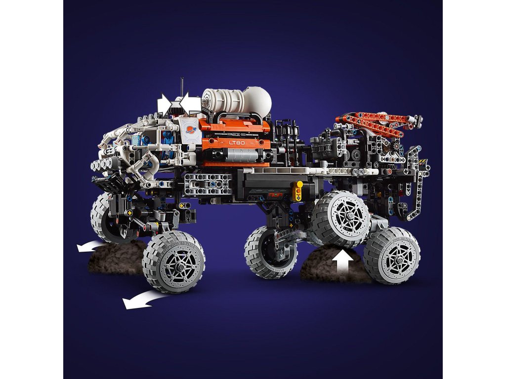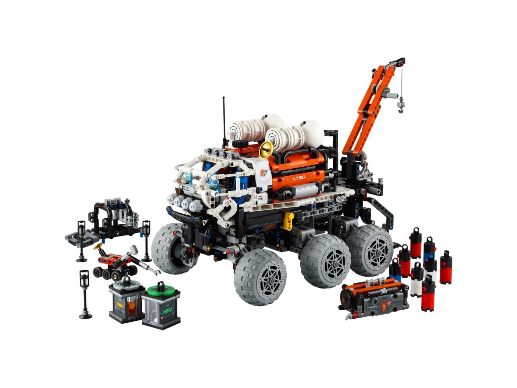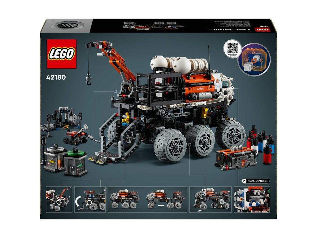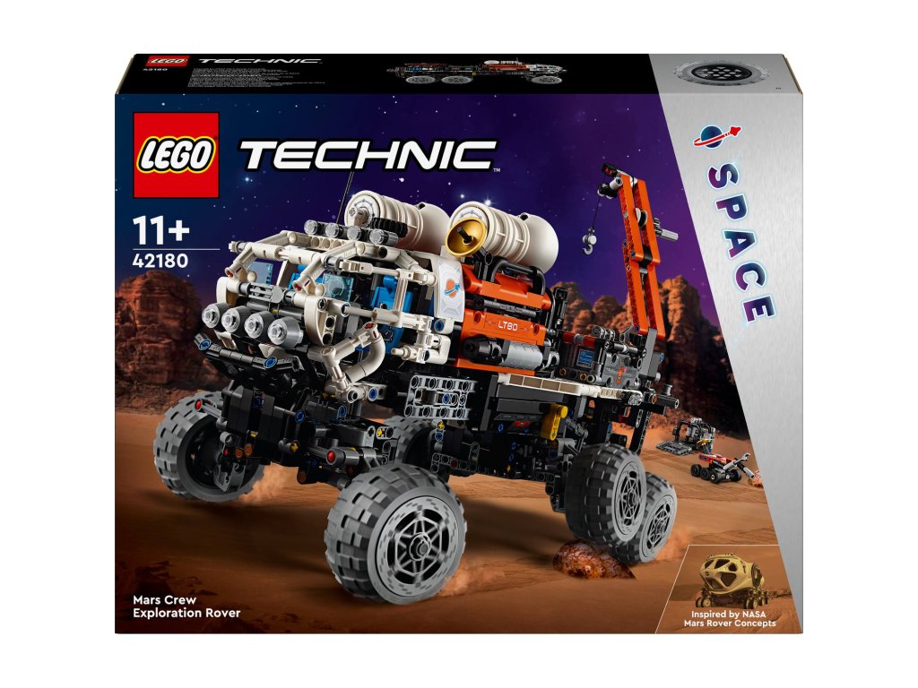 Inspirujte děti od 11 let k tomu, aby se dozvěděly více o misích na Mars se stavebnicí LEGO® Technic (42180) Průzkumné vozítko s posádkou na Marsu. Tato propracovaná stavebnice je plná realistických funkcí pro malé průzkumníky. Model lze rozložit a odhalit nákladní prostor. Děti otestují odpružení a nasměrují vozítko do správné polohy. Poté pomocí jeřábu zvednou robotické vozidlo, nástroje a palivový reaktor. V obytném prostoru pro posádku najdete sedadla, sprchu, toaletu, běžecký pás a lednici. Ve vozidle nechybí funkční výtah, nádoby na recyklaci a vzorky a kanystry na plyn a vodu.