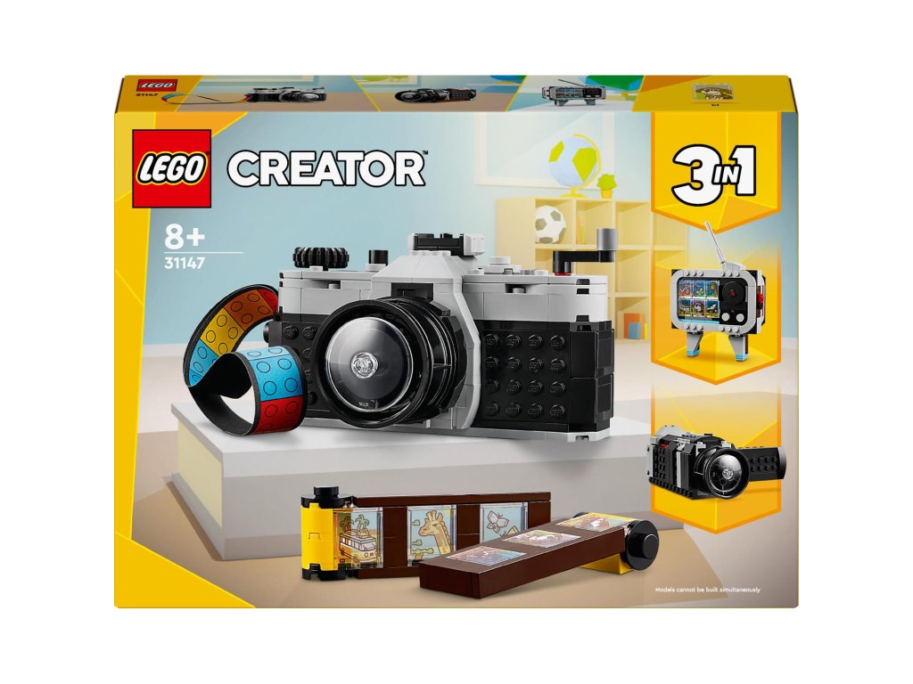 Tato stavebnice LEGO® Creator 3 v 1 dětem přináší možnost postavit si hned 3 různé retro modely z jedné sady kostek. Postaví si model fotoaparátu, který pak přestaví na retro kameru a tu zase přeskládají na retro televizi s anténou. Všechny 3 modely se budou skvěle vyjímat na výstavce v dětském pokoji.